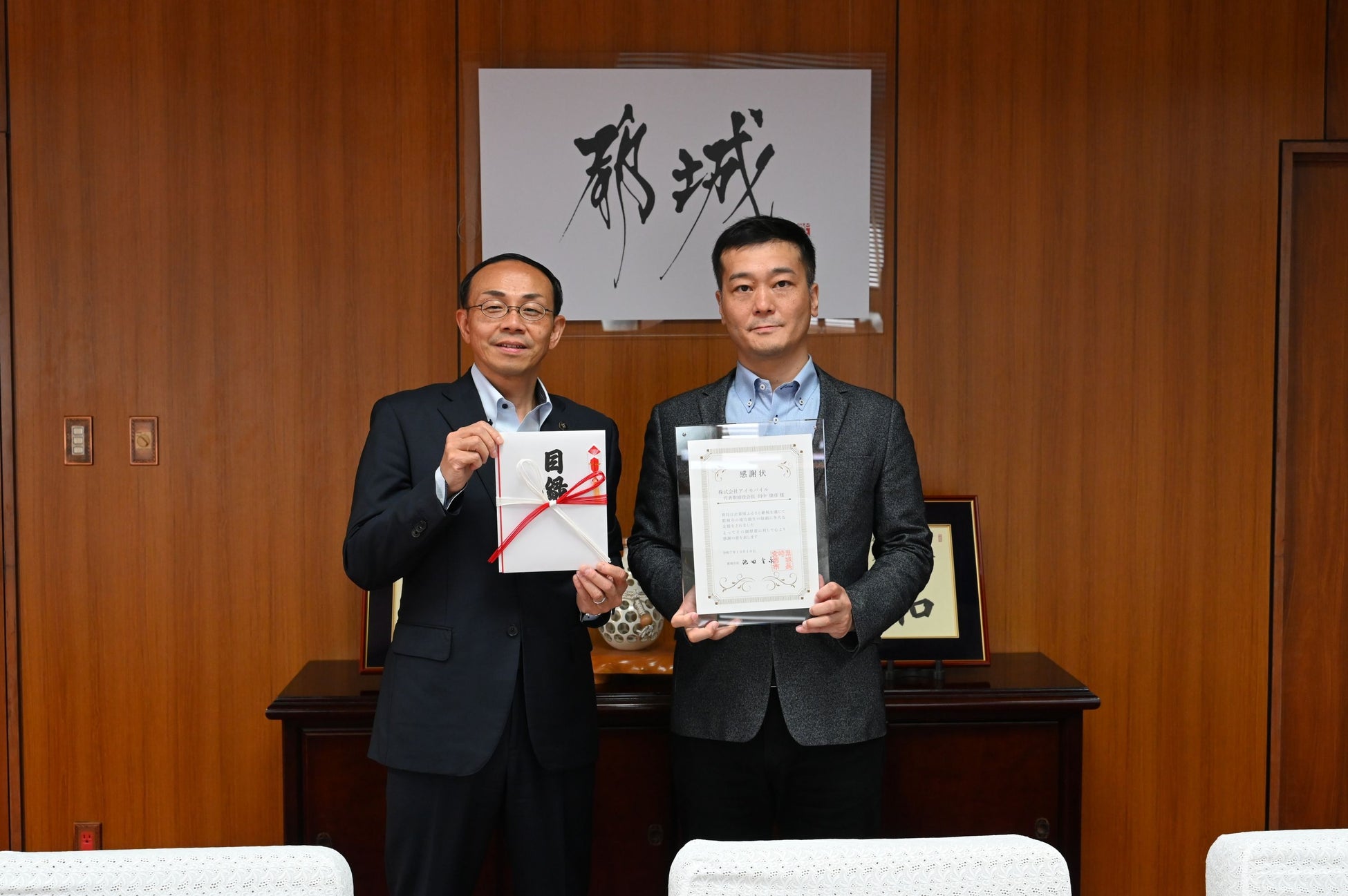 農業後継者等育成事業に対して、株式会社アイモバイル様より、企業版ふるさと納税を活用したご寄附をいただきました。これを受けて10月10日㈮に感謝状贈呈式を行いました。