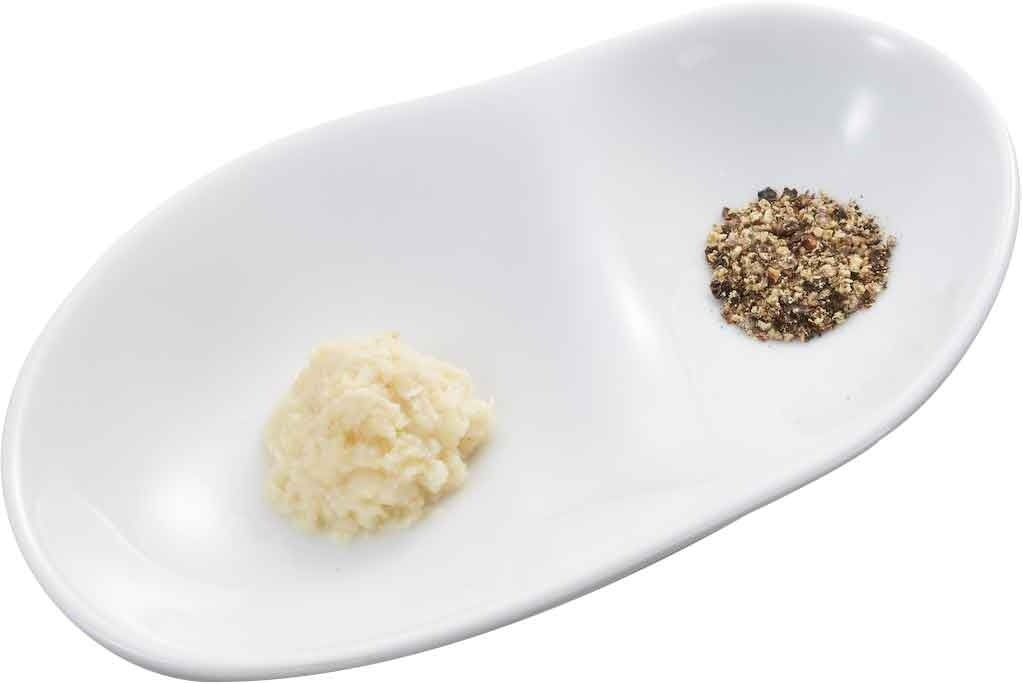 富山県産の釜揚げ白えびと肉厚の帆立に、明太子、大根おろしをあわせた冷製カッペリーニです。フライドガーリックとゴマを加えた醤油ベースのパスタは、香ばしい風味で食欲をそそります。釜揚げ白えびの上品な甘さを、おろし明太子のさっぱりとした味わいと一緒にご堪能いただけます。香り豊かな大葉やきざみ海苔と一緒にお召し上がりください。