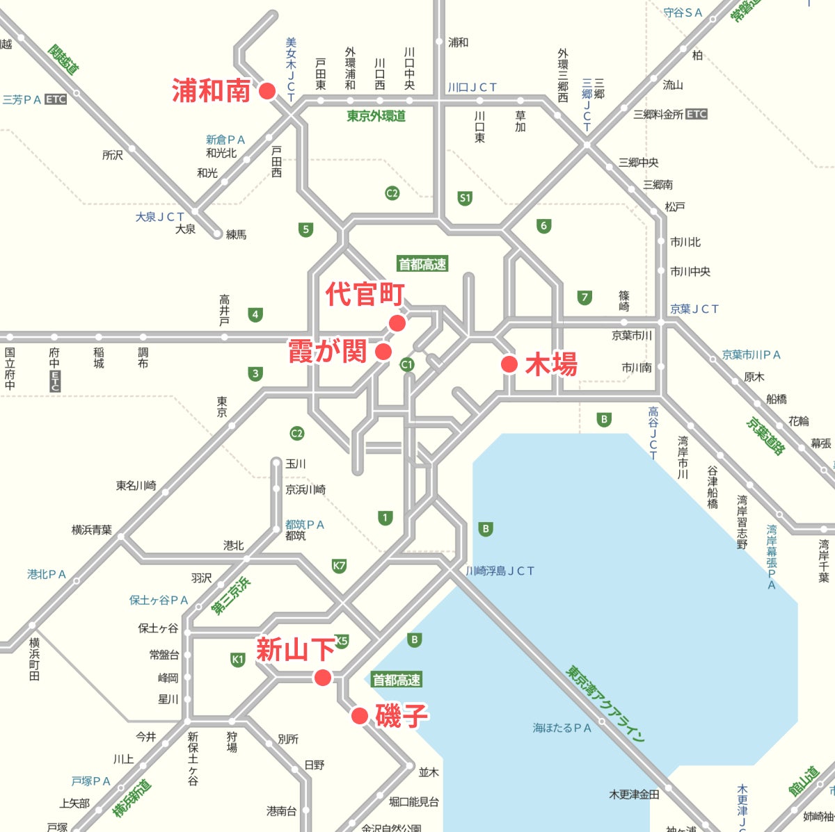 「霞が関(内・外)」、「代官町」、「木場」、「浦和南」、「新山下(上)」、「磯子」の6カ所の「ETC専用料金所」(図1)を含むルートのナビ開始時や、料金所の手前で音声による注意喚起を行い、ETC非搭載車の誤進入を防止することで、安全・安心な運転をサポートします。