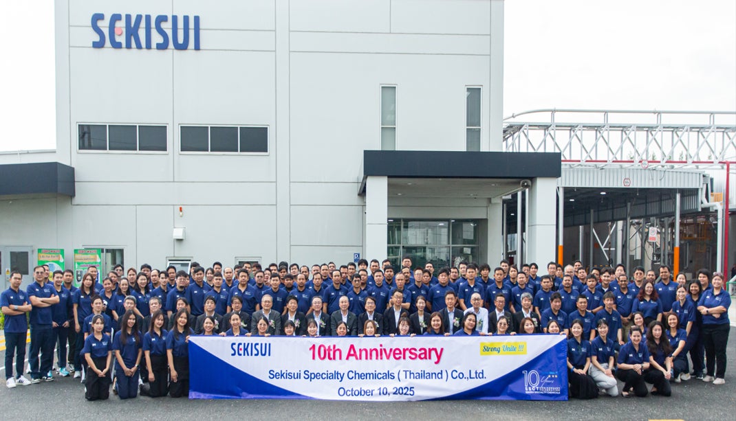 積水化学工業株式会社(代表取締役社長:加藤敬太、以下「積水化学」)のタイの連結子会社である、SEKISUI SPECIALTY CHEMICALS (THAILAND) CO., LTD.(取締役社長:中島利行、以下「SSCT」)は、工場の稼働開始10周年記念式典と併せ、第2工場の竣工式を10月10日にタイ東南部マプタプットのヘマラートイースタン工業団地内にある工場敷地内において開催しました。