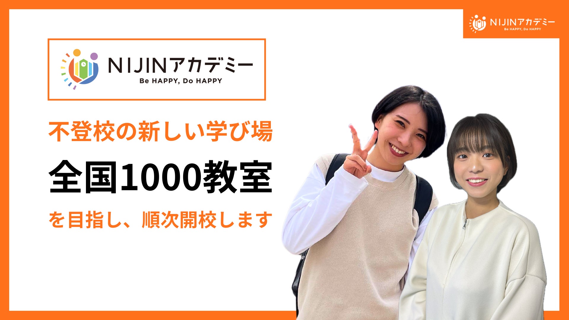 株式会社NIJIN(本社:東京都江東区、代表取締役:星野達郎)が運営する不登校オルタナティブスクール『NIJINアカデミー』はこのたび、全国1000教室を目標にリアル教室を開校することをお知らせいたします。