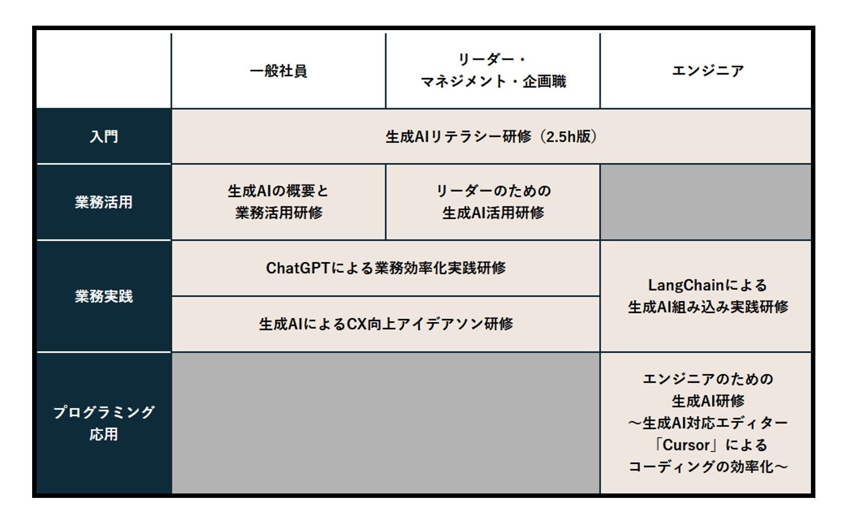 本サービスは、初学者からエンジニアまで幅広い層を対象に、業務で即活用可能な実践的AIスキルを習得いただける内容です。