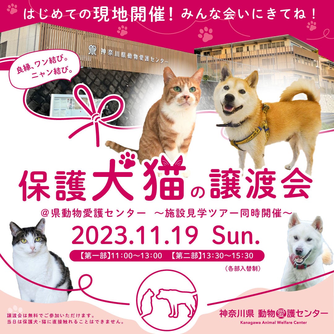 ・当日は動物の譲渡はありません。実際に保護犬猫を譲り受ける際には、神奈川県民であること、譲渡前講習会を受講していること等の条件があります。詳細は、県動物愛護センターのホームページをご覧ください。
