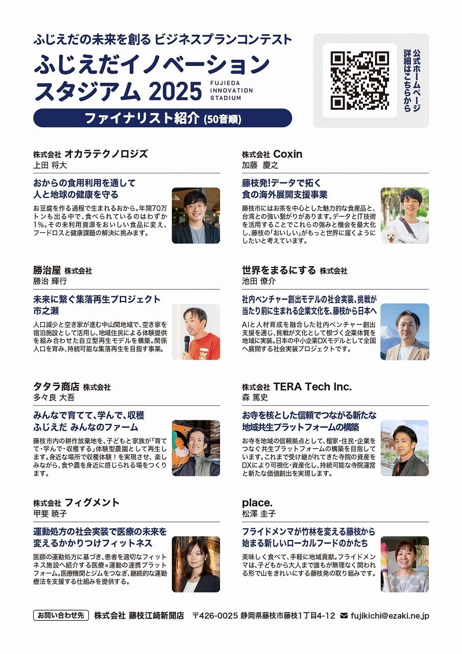 藤枝市の新たな成長戦略である「食と農」と「健康・医療」、「地域課題の解決」をテーマとした、ビジネスプランコンテスト「ふじえだイノベーションスタジアム2025」の最終審査会を開催します。