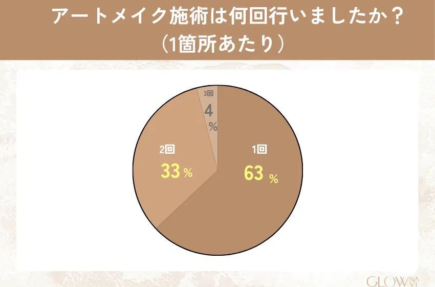 「1回」と回答した方が63%と最多でしたが、2回施術した方が自然で綺麗に仕上がることがわかります。コストや時間の関係で1回で済ませる方も多いようです。