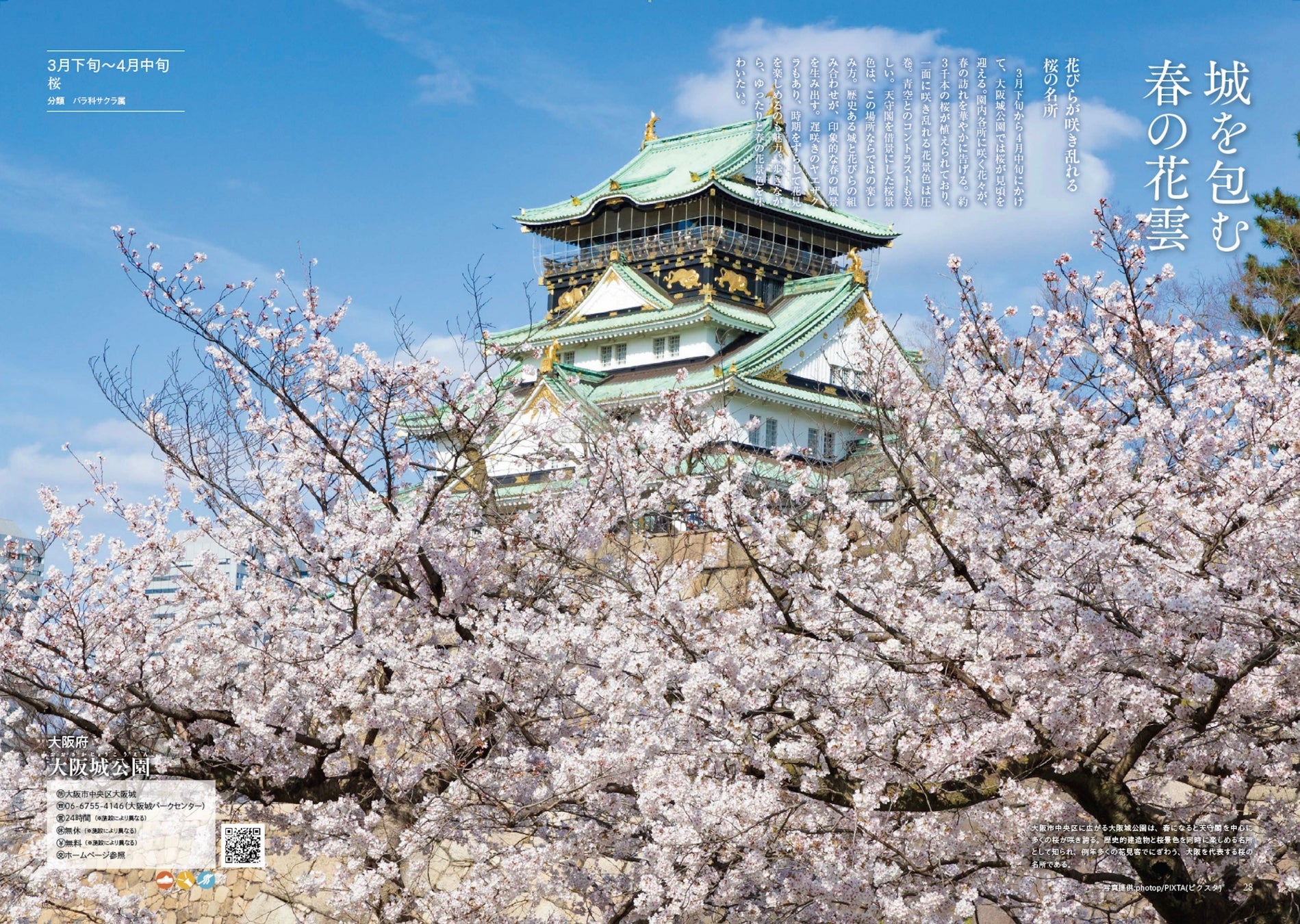 弘前公園の桜/角館のシダレザクラ/北上市立公園展勝地/森田鉄工所 権現堂桜堤 Mirai Park /国営ひたち海浜公園/河津桜と菜の花 /佐倉ふるさと広場/浜名湖ガーデンパーク/花鳥山一本杉公園/観光農園花ひろば/となみチューリップフェア/吉野山 /兵庫県立公園 あわじ花さじき/大阪城公園/紫雲出山/尾道千光寺公園/津山城 鶴山公園/大村公園/南阿蘇桜公園/世界遺産今帰仁城跡