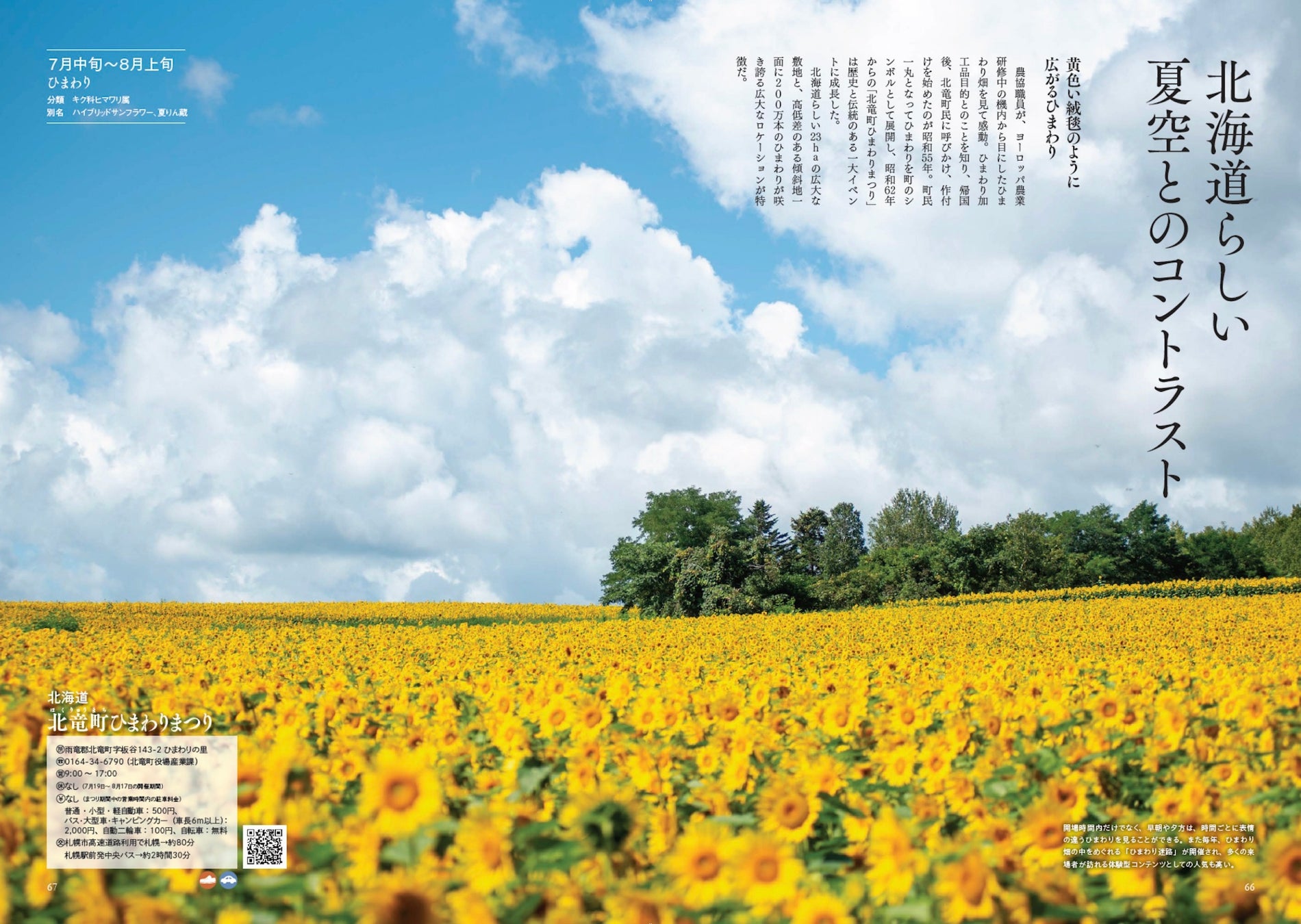 北竜町ひまわりまつり/展望花畑 四季彩の丘/津南ひまわり広場/古代蓮の里/三渓園/あけぼの山農業公園/ふなばしアンデルセン公園/志摩市観光農園/愛知牧場/北川村「モネの庭」マルモッタン/むつみフラワーロード/世羅高原牧場/ラワーパークかごしま
