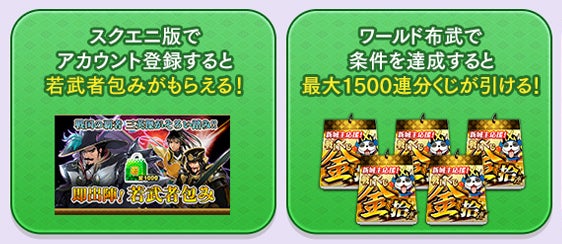 また、スクウェア・エニックス版にてアカウント本登録を行うと、強力な武将カードがパックとなった「若武者包み」も無料でもらえます。『戦国IXA』を遊んだことのない方、久しぶりに遊ぶ方は、ぜひ今からゲームを始めて11月末のひろゆき氏の参戦に備えてください。