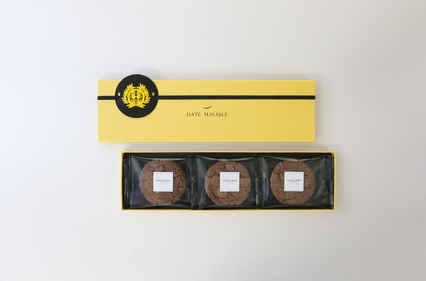 伊達家の家紋が描かれたパッケージで、お土産に最適です。まろやかで旨味のある『伊達の旨塩』を使用。バランスの取れた塩気と甘味があと引くおいしさの、伊達政宗の眼帯をイメージしたチョコレートサブレです。