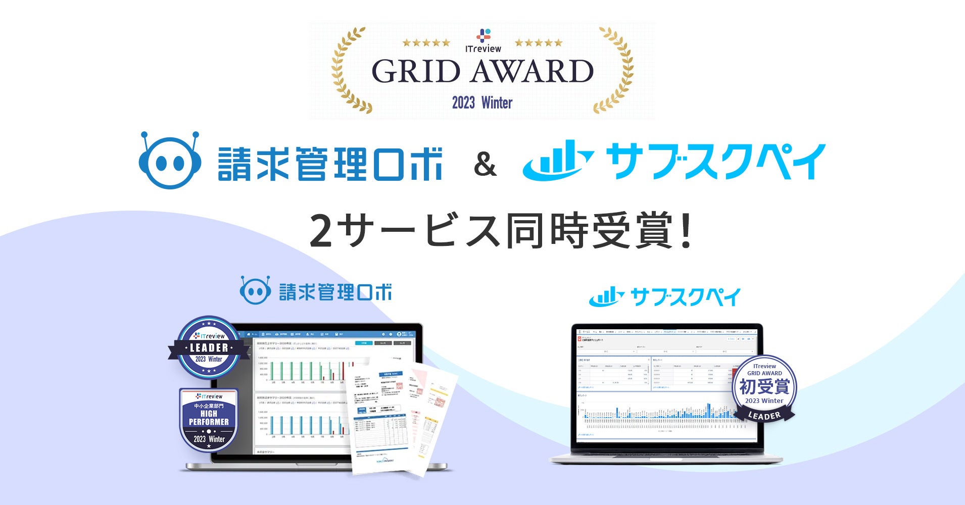 請求管理ロボ、サブスクペイが「ITreview Grid Award 2023 Winter」において、最高位の『Leader』を同時受賞