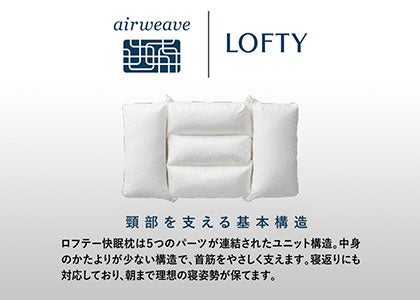 2層のリバーシブル構造(しっかりめ/やわらかめ)なので、お好みの感触を選べます。仰向け、横向きの寝姿勢を考慮した、ロフテー独自の5分割構造で寝返りがスムーズにできて頭と首が心地よくフィット。寝ている間も素材が片寄らないので朝まで理想的な寝姿勢が保てます。