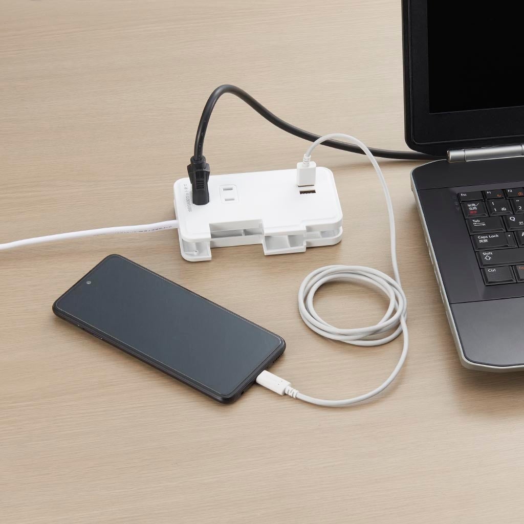 品名 :巻取りモバイルタップ3個口0.9m USB付
