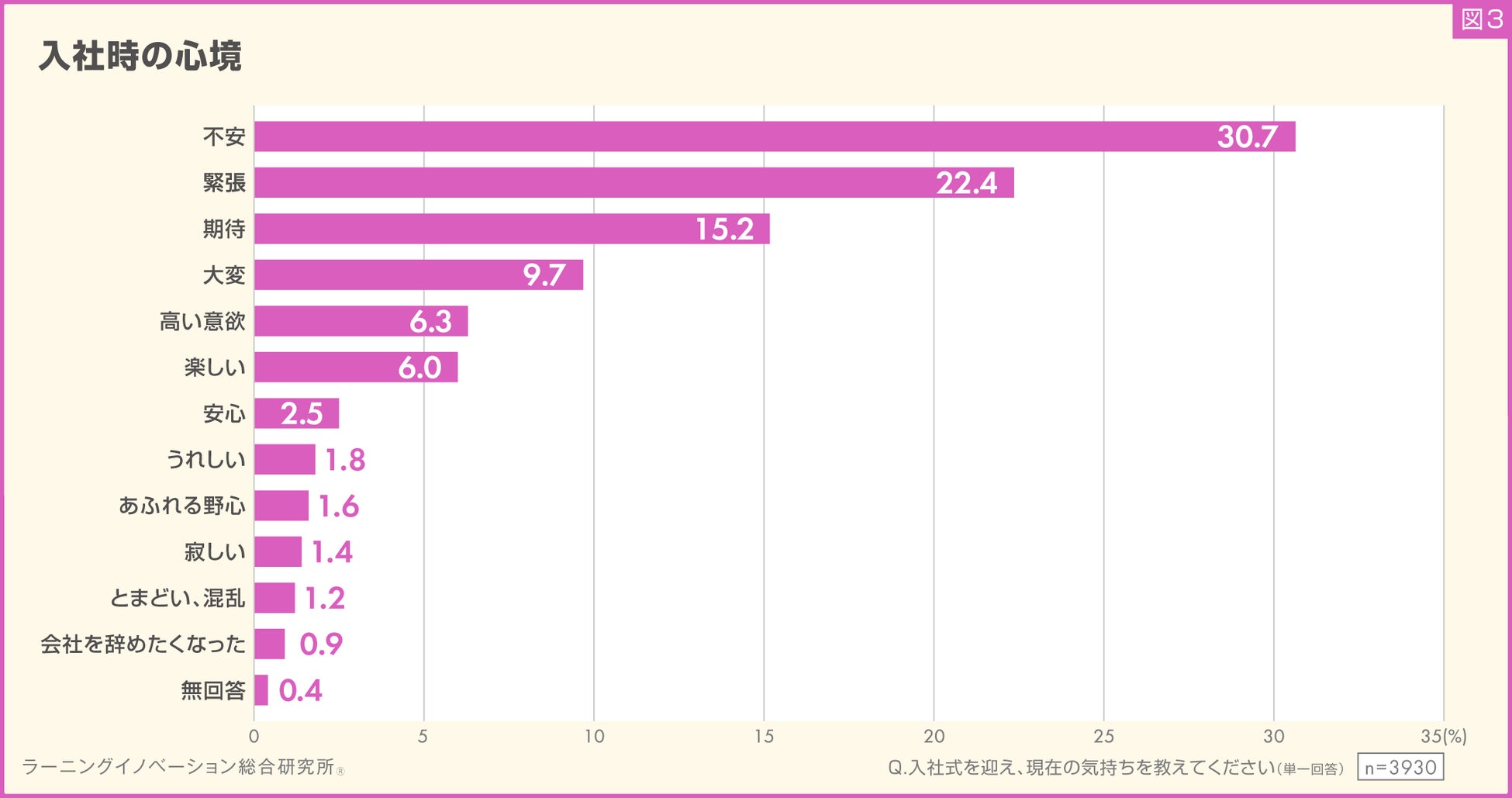 新入社員の入社時の気持ち、30.7%が「不安」と回答し、最大の割合(図3)