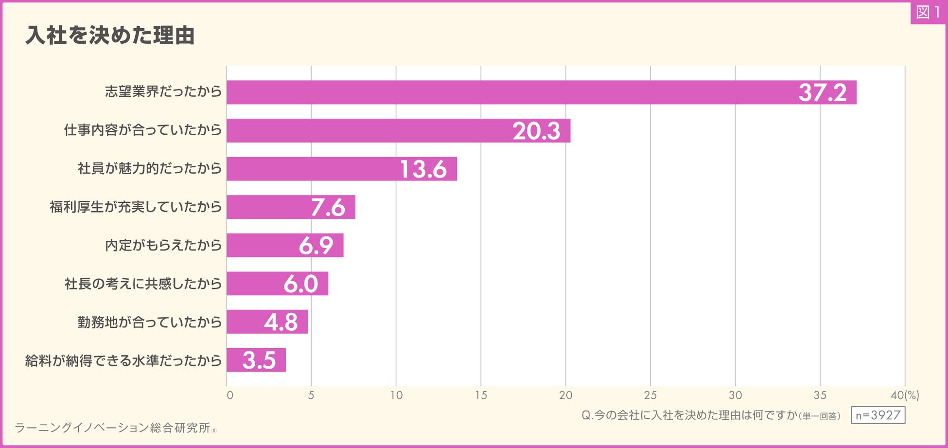 1. 新入社員の入社理由、12年連続1位「志望業界だったから」。2023年の急増後、35%以上を維持