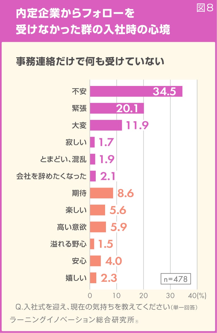 内定期間中に会社から受けたフォローの内容と、入社時の心境には関係性があるのでしょうか。