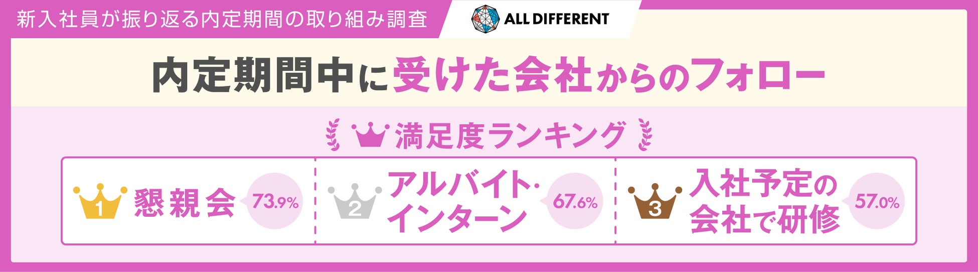 【調査】内定企業からのフォロー満足度ランキング、1位は「懇親会」、2位「アルバイト・インターン」、3位「入社予定の会社で研修」