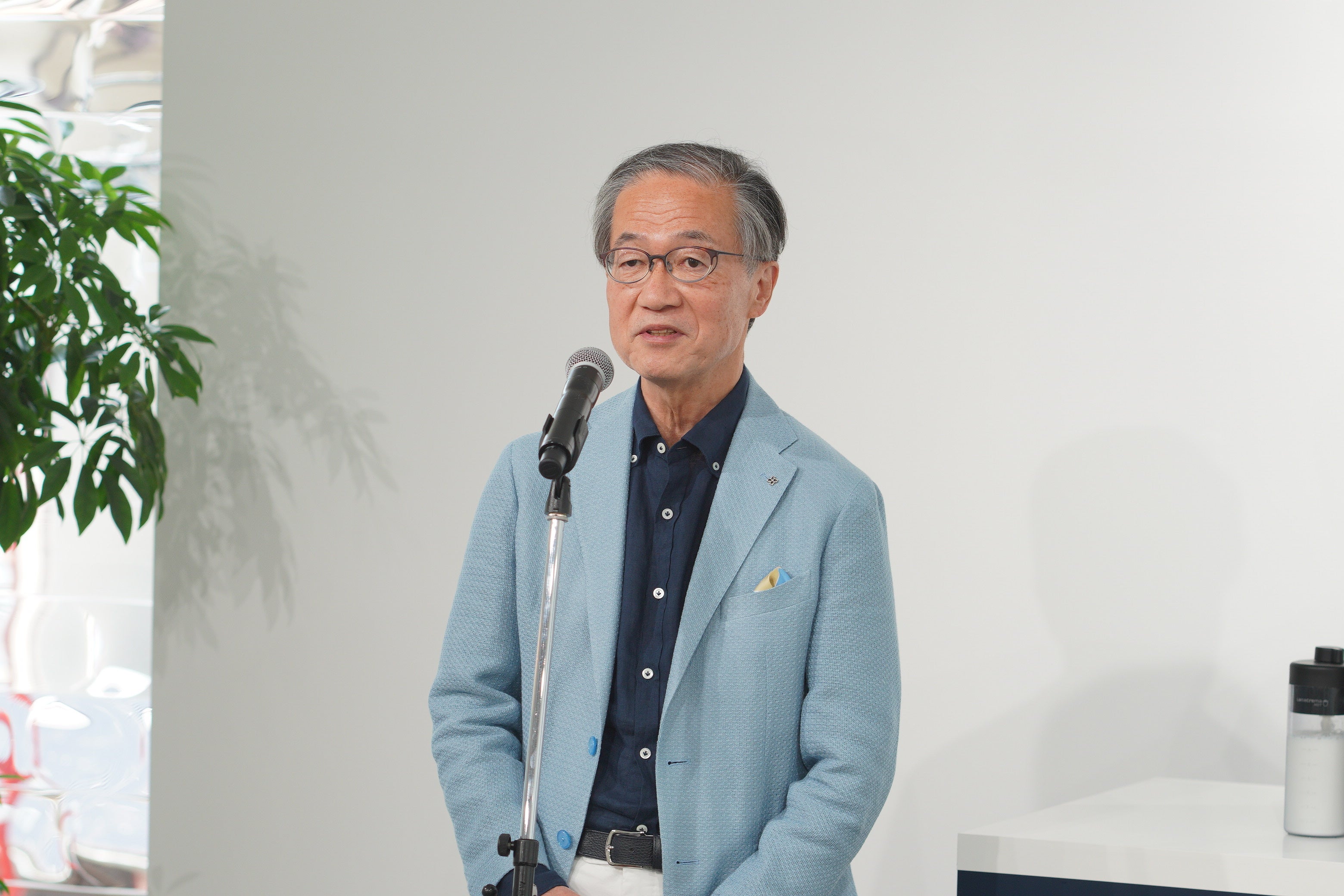 会場では、代表取締役社長・杉本よりブランド、製品に関するプレゼンテーションを行い「デロンギでは「Perfetto, from bean to cup.~豆から挽いた極上の一杯を~」をスローガンに、皆さまにおいしいコーヒーを楽しんでいただくだけでなく、素敵な時間を家でも楽しんでいただくというコンセプトとして展開しています。本日皆さまにご紹介する製品は、名前にエクスプロア(探求)とあるように多彩なメニューを楽しんでいただくだけでなく、ご自分の好きなものを探求していただきたいという思いがあります。私はこの製品がコーヒー市場のゲームチェンジャーになると思っています。ぜひ、コーヒーの世界をエクスプロアできるマシンで、色々な楽しみ方を探求してください」と述べました。