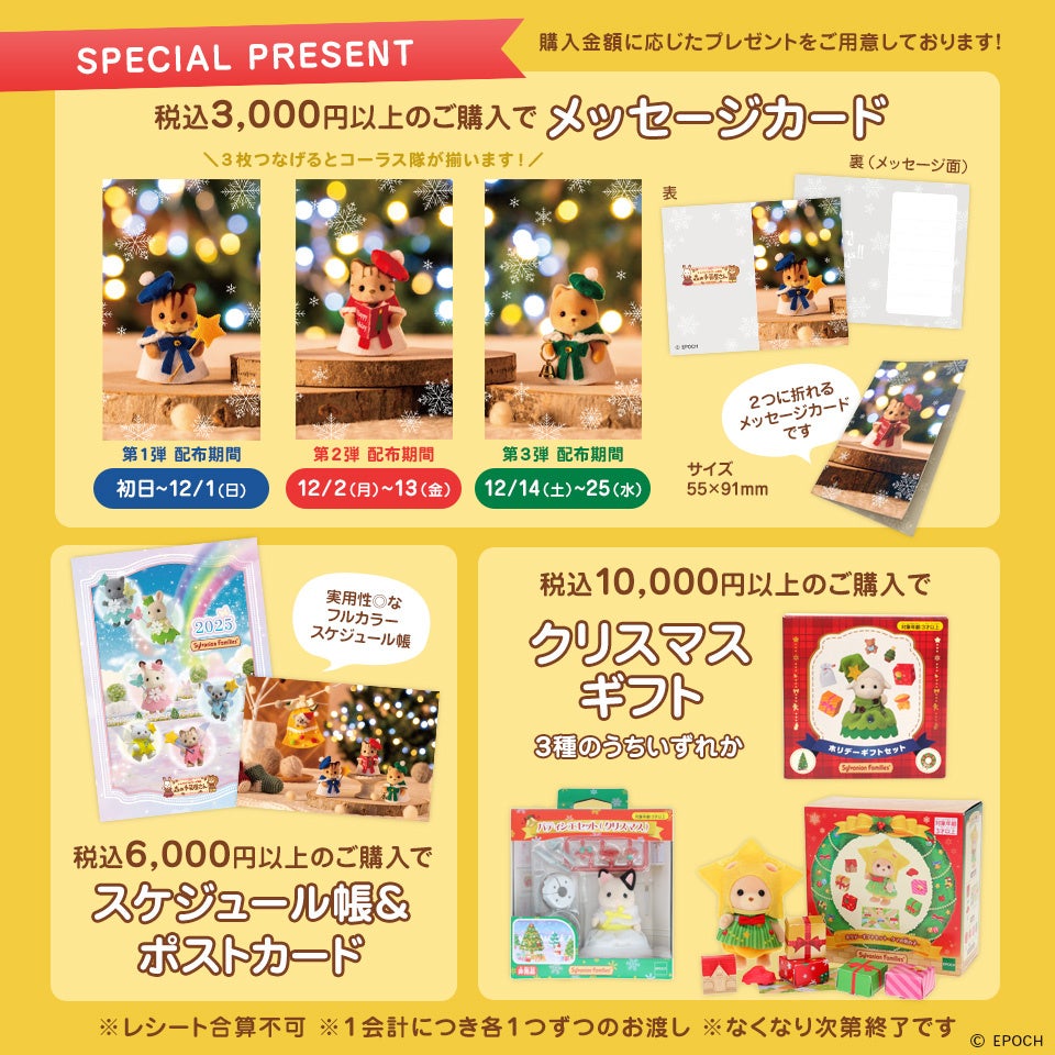 また6,000円以上のご購入でスケジュール帳とポストカード、さらに10,000円以上のご購入でクリスマスギフトもプレゼントいたします。
