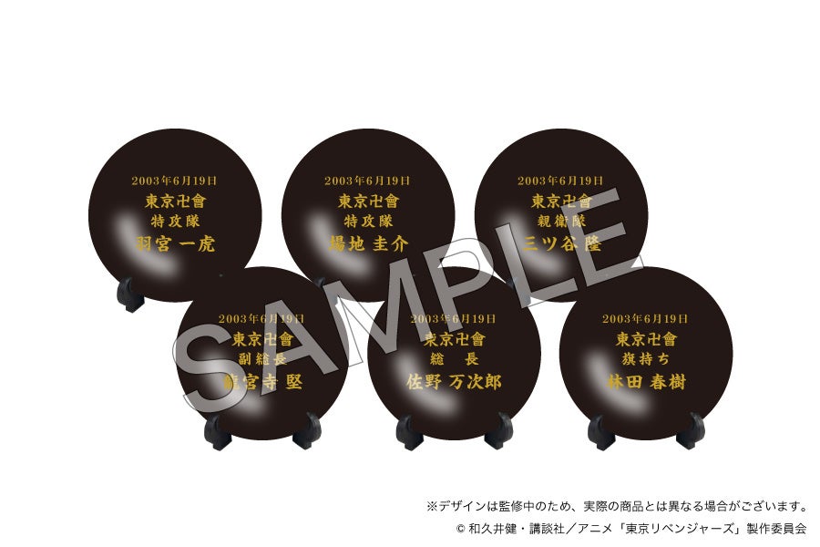 「東京卍會 梅酒」をご購入いただいた方には、購入特典として東京卍會結成メンバーの名入り平盃を一緒にお届けします。メンバー6名それぞれの名前が入った全6種類の名入り平盃がコンプリート出来る「東京卍會 平盃-全6種セット-」は「東京リベンジャーズ」ファン必見です。