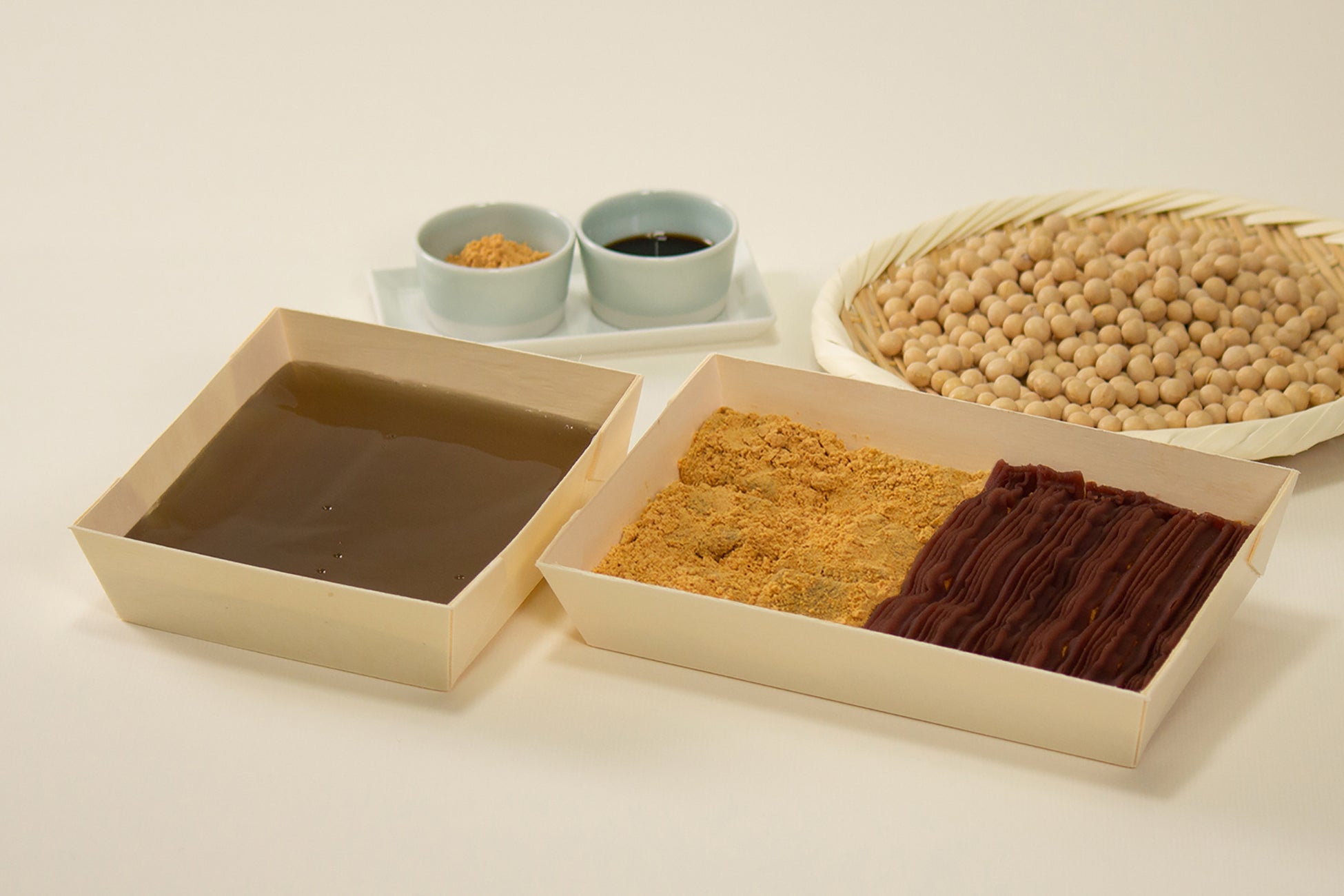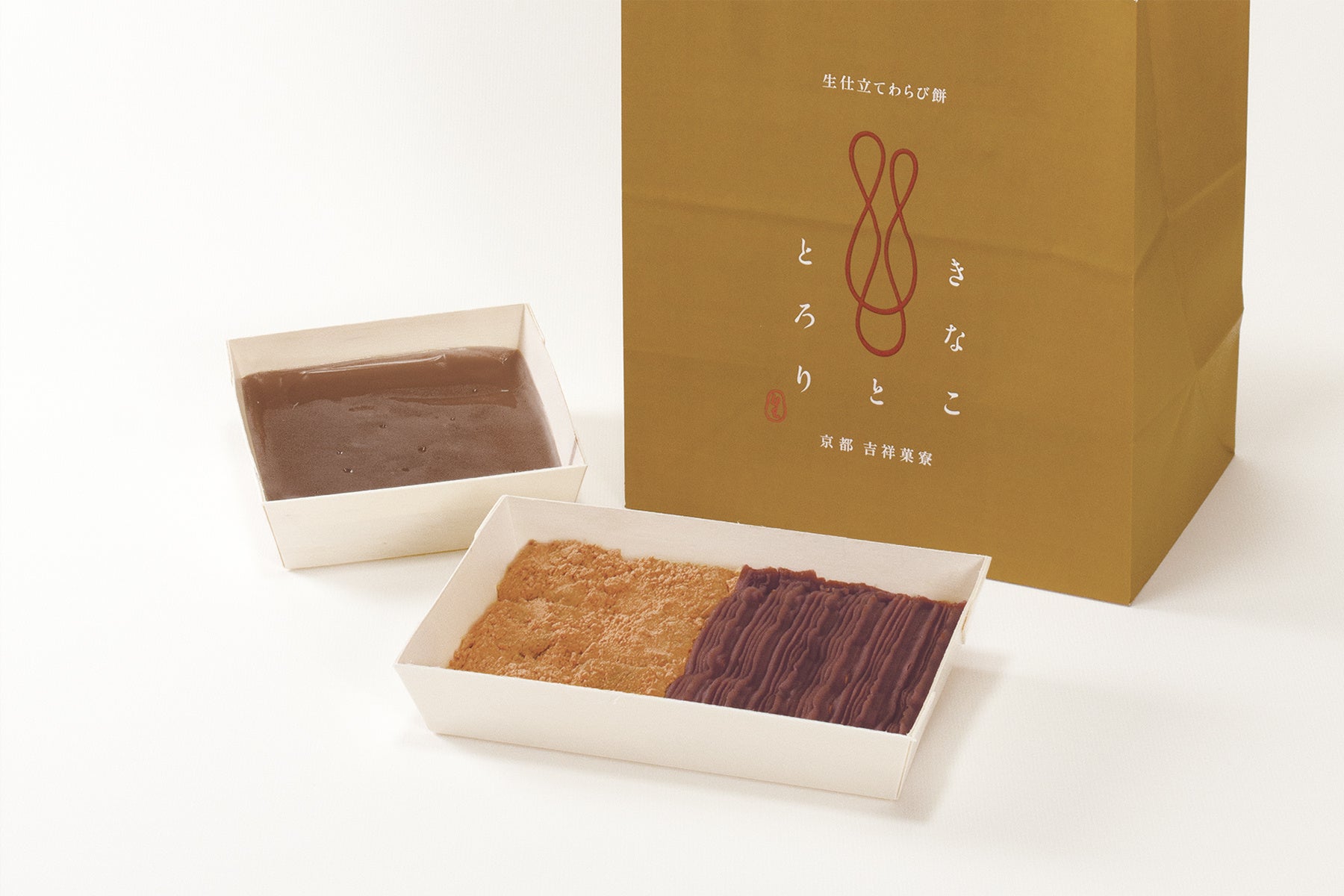 これを記念して、2022年12月20日(火)から12月23日(金)までの4日間、グランドオープン限定セットをご用意。お手軽にお召し上がりいただける“きなこととろりわらび餅”2種(深みきな粉/こしあん)の詰め合わせと、別添えのきな粉でよりできたてに近い「とろり」食感が楽しめる“とろりわらび餅(プレーン)”を組み合わせた特別セットです。