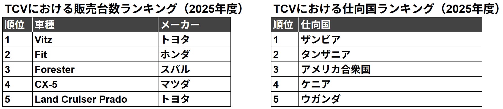 2025年 TCV年間売上車種・仕向国ランキングベスト5も発表!