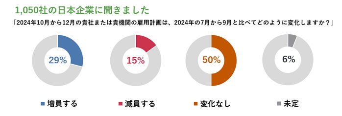 「2024年10-12月において、貴社または貴機関の雇用計画(契約社員、派遣社員などを含む)は今期(2024年7-9月)と比べてどのような変化がありますか?」 |