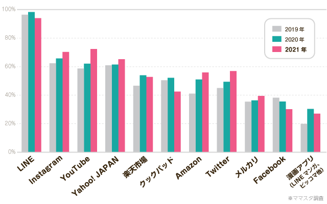 - 2021年ママ達が活用しているサービスはYouTubeや Instagram!
