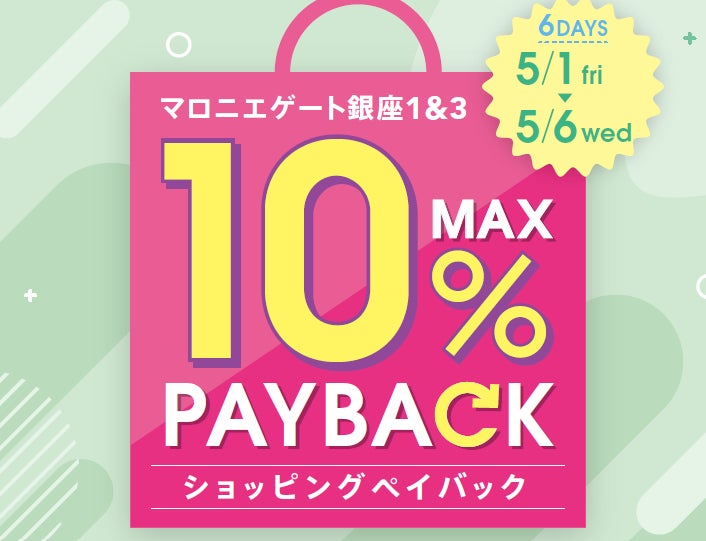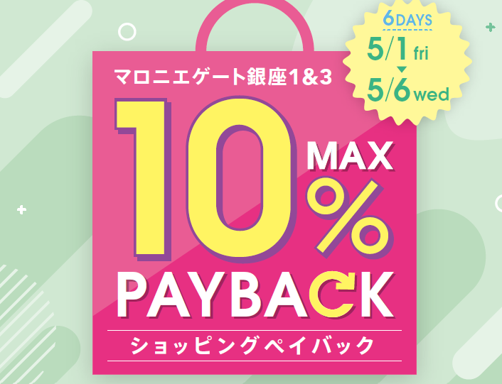 【マロニエゲート銀座1】5月1日(金)~5月6日(水・休)まで「最大10%還元!ショッピングペイバック」開催!