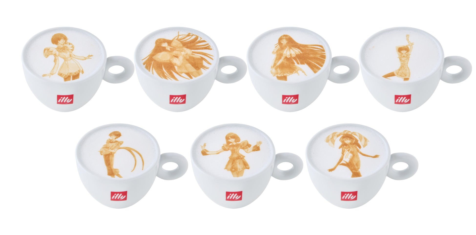 永野護さんの代表作『ファイブスター物語』に登場するファティマ6人が浮かび上がるイタリア・イリー社のエスプレッソ豆を使用した本格カプチーノ。全7種からお好きな絵柄を選べます。一杯ご注文につき、オリジナルステッカー1枚をランダムで差し上げます。