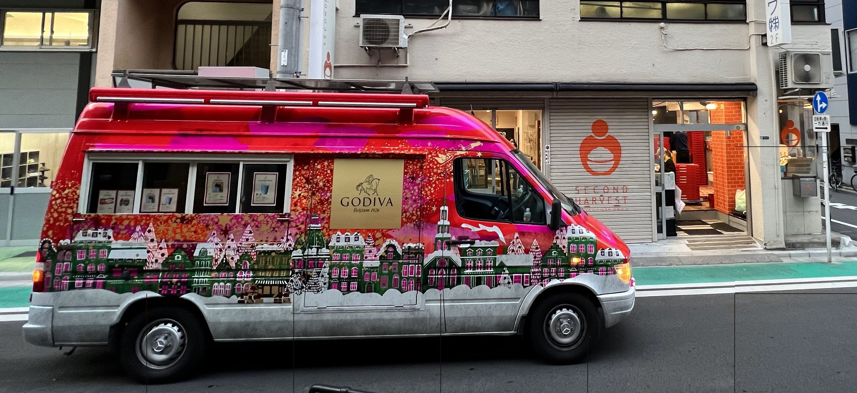 クリスマス特別ラッピングカー「ゴディバ クリスマスバン」による寄付活動を実施