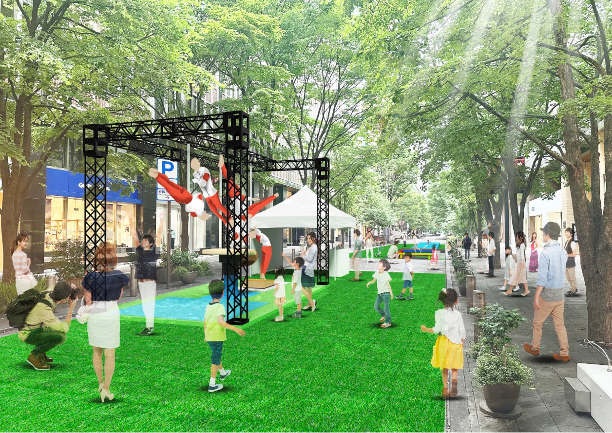 「Marunouchi Street Park」は、2019年から実施しており、11回目を迎える今回は、実施範囲を前回の3ブロック(約300m)から大幅に拡大し、5ブロック(約500m)に及ぶ都心の道路空間に24時間交通規制をかけ、広場・公園的空間に転換します。芝生が広がるピクニック空間や使い方も多岐にわたるテーブルやベンチ、他にも音楽・スポーツ・ウェルネスをはじめとする様々なアクティビティが登場し、質の高い「滞留」「回遊」空間で賑わいを生み出します。また、会期中には体操ニッポンとコラボした特別イベントやサステナビリティを意識した期間限定の施策も展開します。