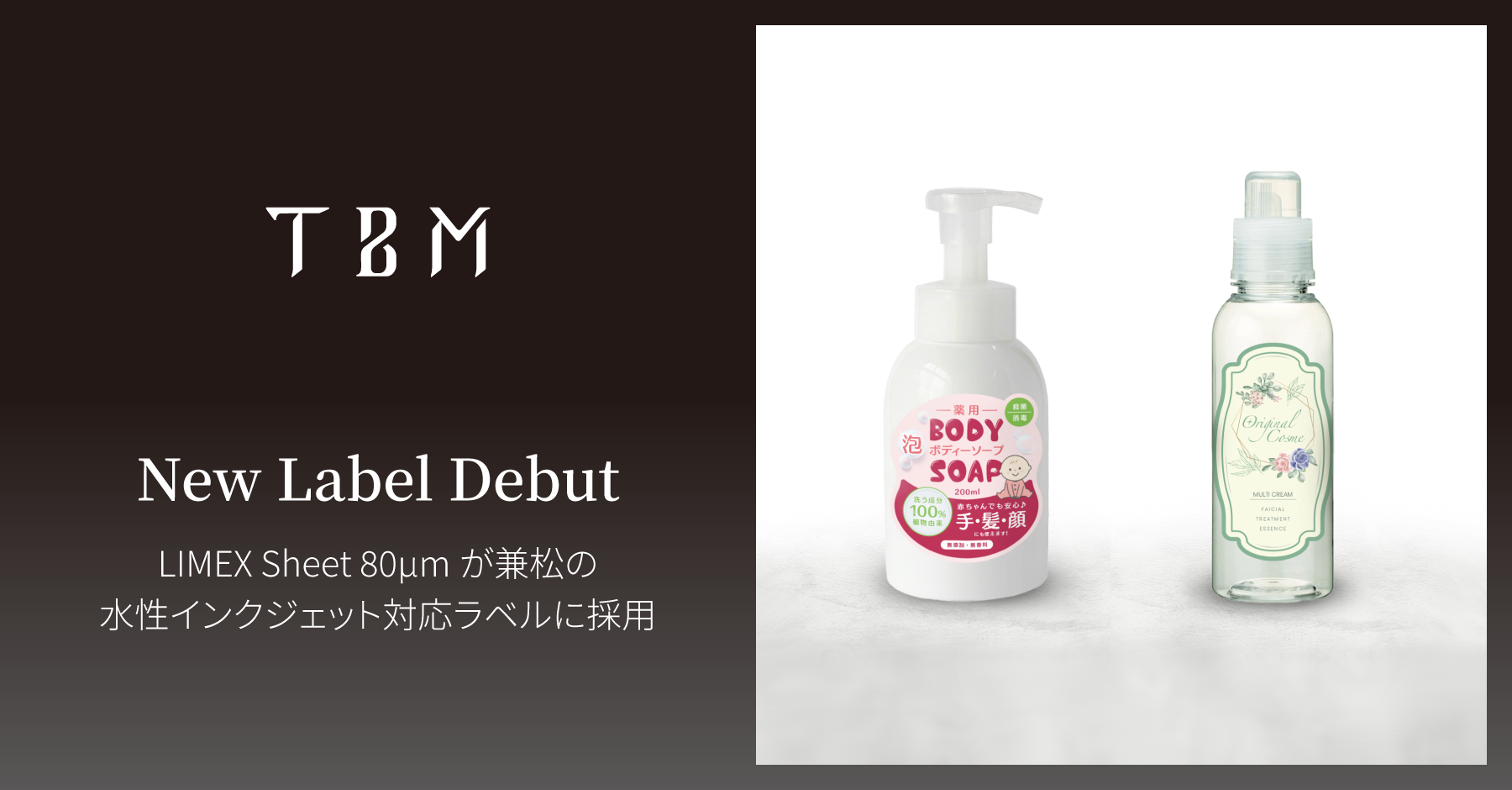 株式会社TBM(本社:東京都千代田区、代表取締役CEO:山﨑敦義、以下TBM)の「LIMEX Sheet(ライメックスシート)」80μmが、兼松株式会社(本社:東京都港区、代表取締役社長:宮部佳也、以下兼松)が開発・販売する水性インクジェット対応の粘着ラベル用基材に採用されました。水性インクジェット印刷に最適な加工が施された「LIMEX Aqua Jet Label(ライメックス・アクア・ジェット・ラベル)」(光沢・マット加工の2種類)は、7月より販売が開始されます。