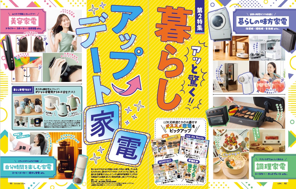 10月号は家計を助ける安くてイイものを総力特集!物価高に負けず、暮らしをもっともっと楽しんじゃいましょう。さらに、理想のお部屋づくりを叶える収納アイデアもたっぷり掲載。また、LDKの兄妹誌『家電批評』と一緒に、暮らしをより良くしてくれるおすすめ家電を集めました!