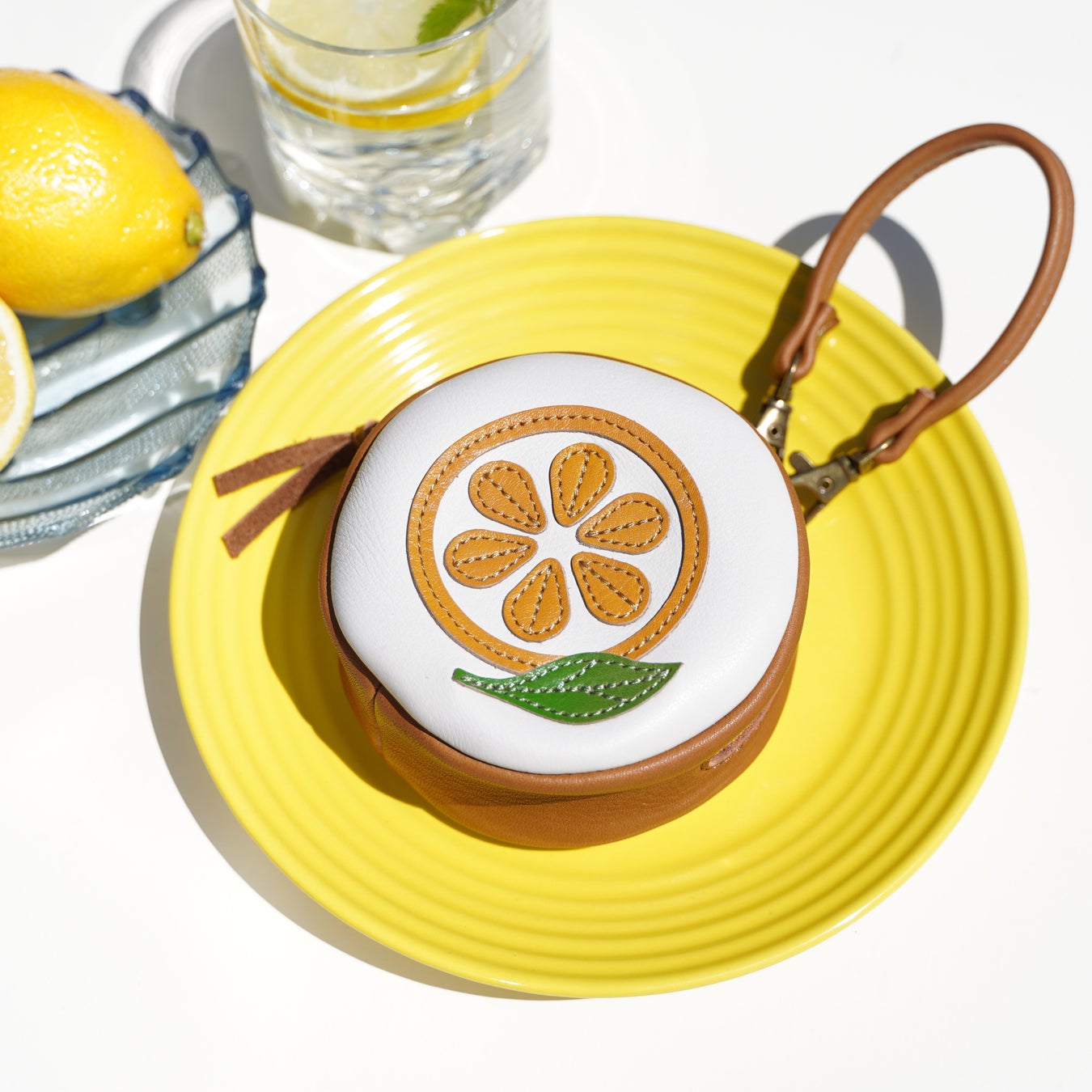 革端材を絵の描くように縫い付けて作る、アップサイクル小物を制作。ケーキ屋ハンバーガーなど食べ物モチーフがユニークで人気を集めている。