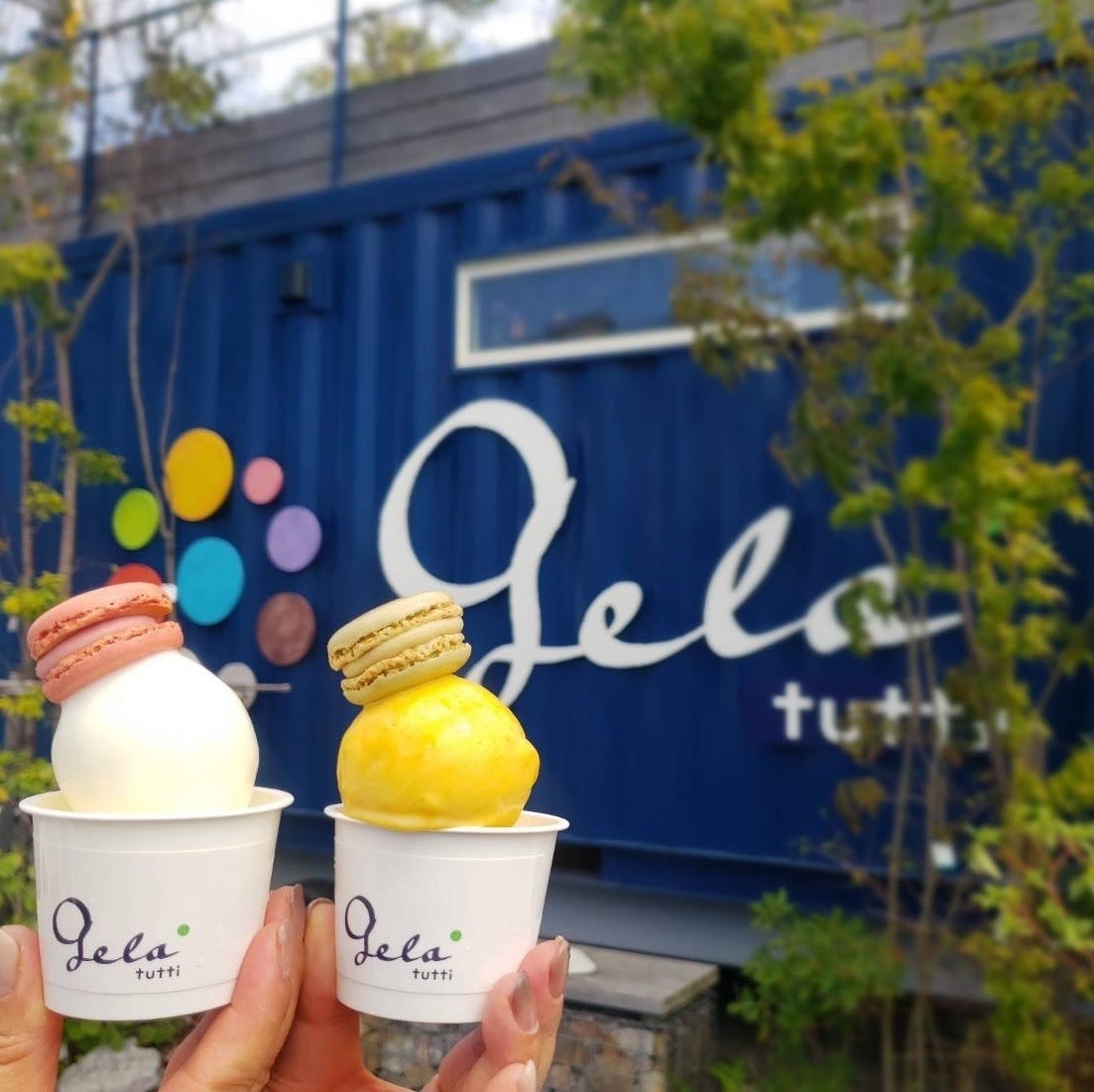 蓮華寺池のほとり、青いコンテナで営まれるジェラート店。川根産ほうじ茶や藤枝産のトマトなど、静岡県産の季節の素材を使用している。