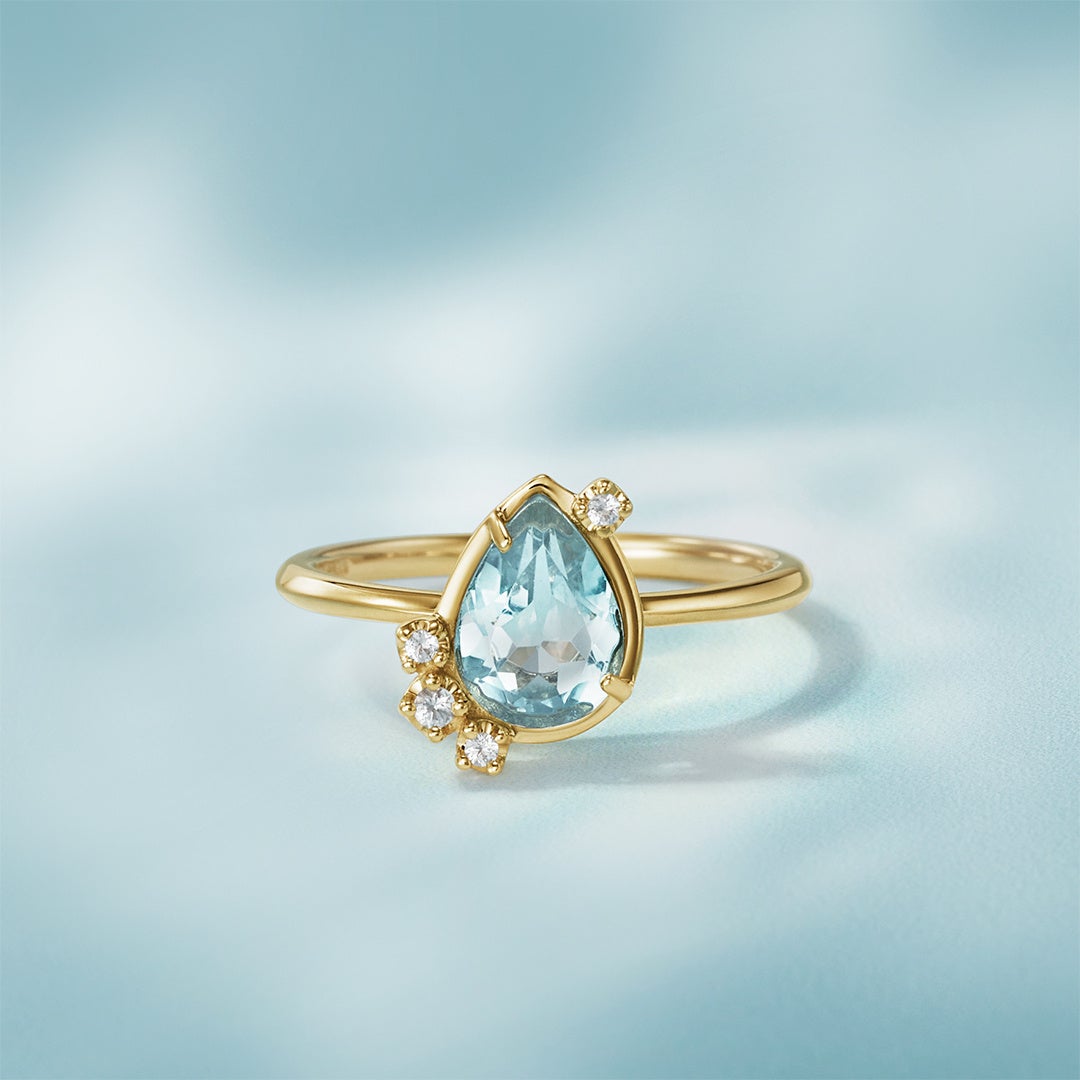 儚くもまばゆい輝きを放つ小さな泡を、透き通った色合いが美しいスカイブルーのトパーズで表現しました。