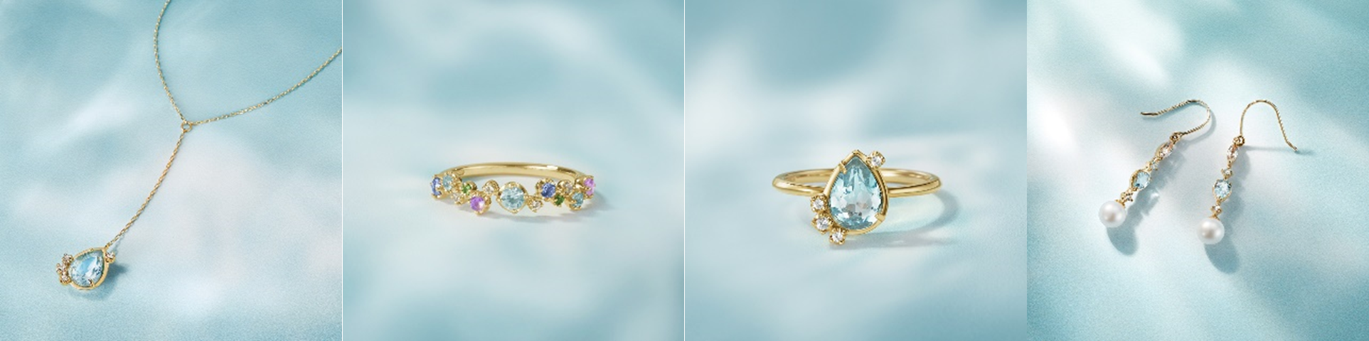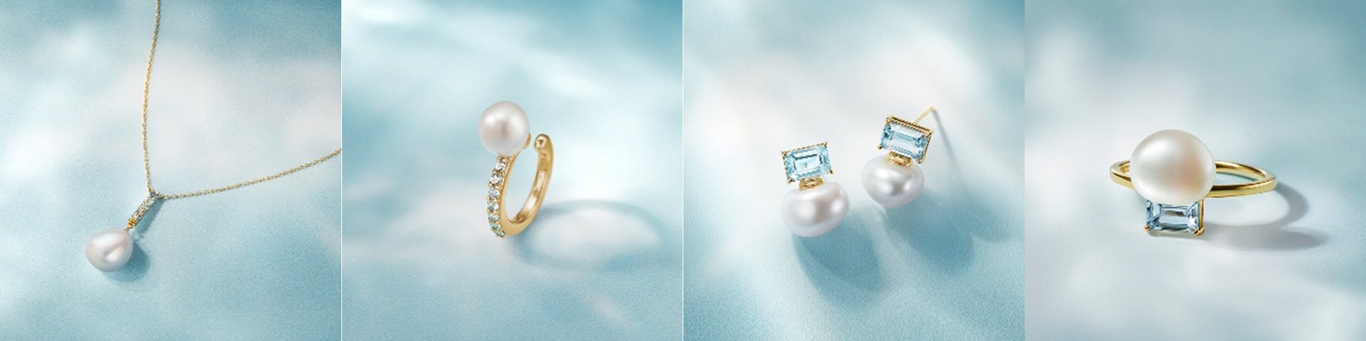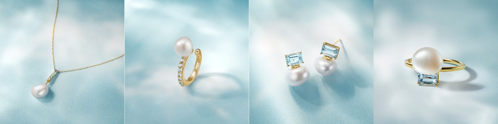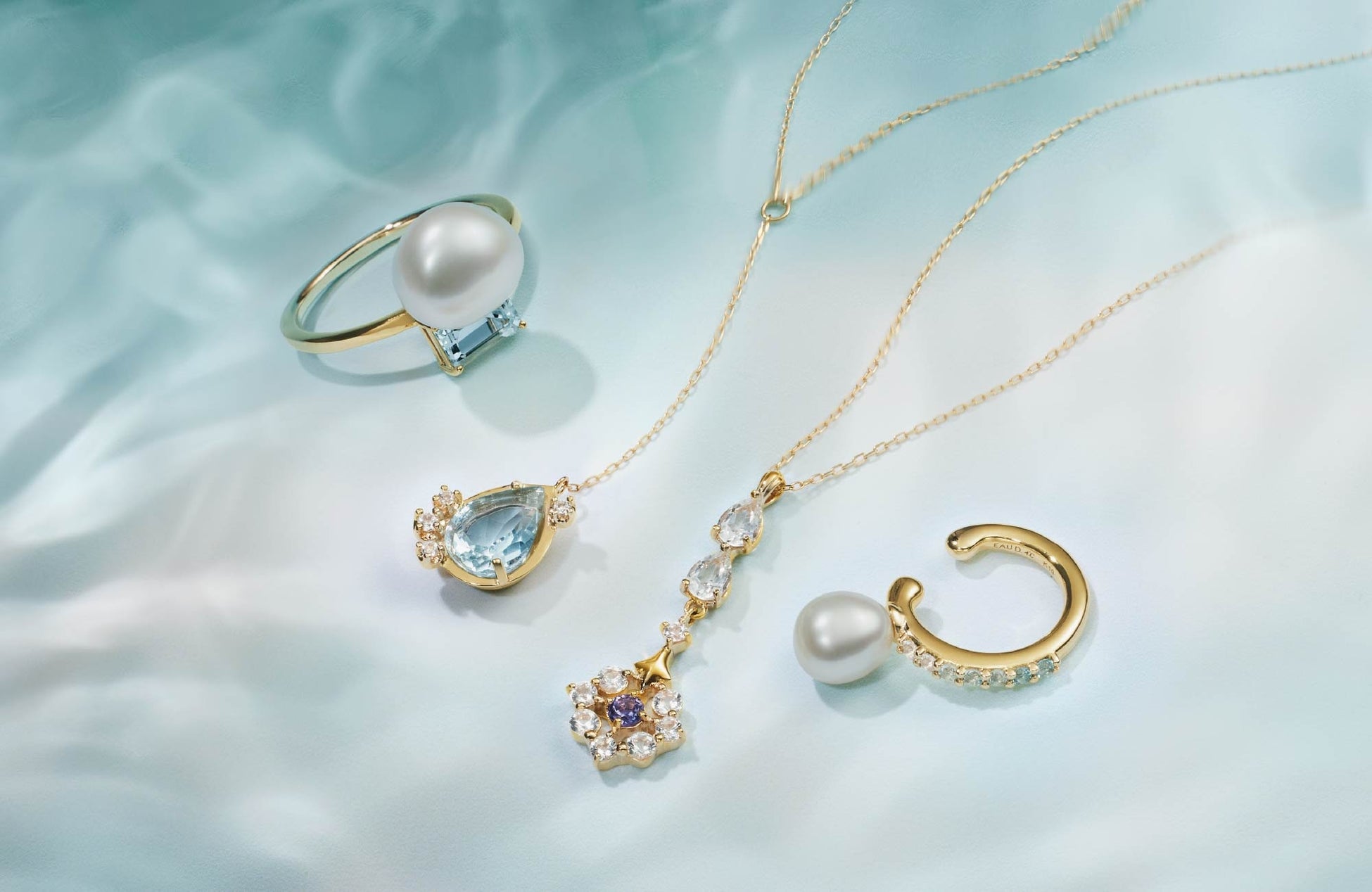 透き通るブルーのカラーストーンやバロックパールで海の泡を表現した EAU DOUCE4℃の「2023 Summer Collection」