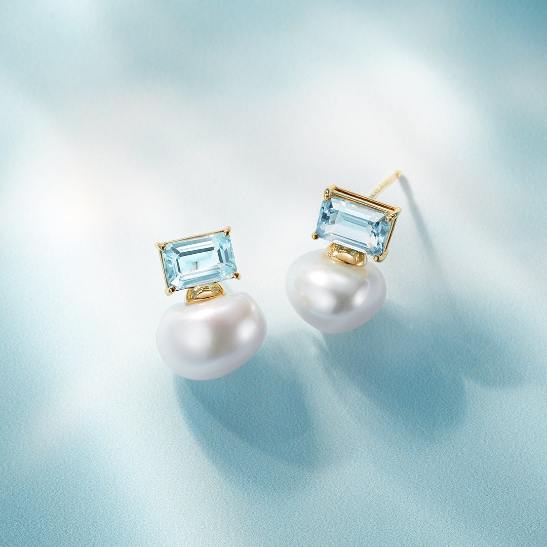 K18YG Pierced Earrings / Topaz / Baroque Pearl ¥52,800