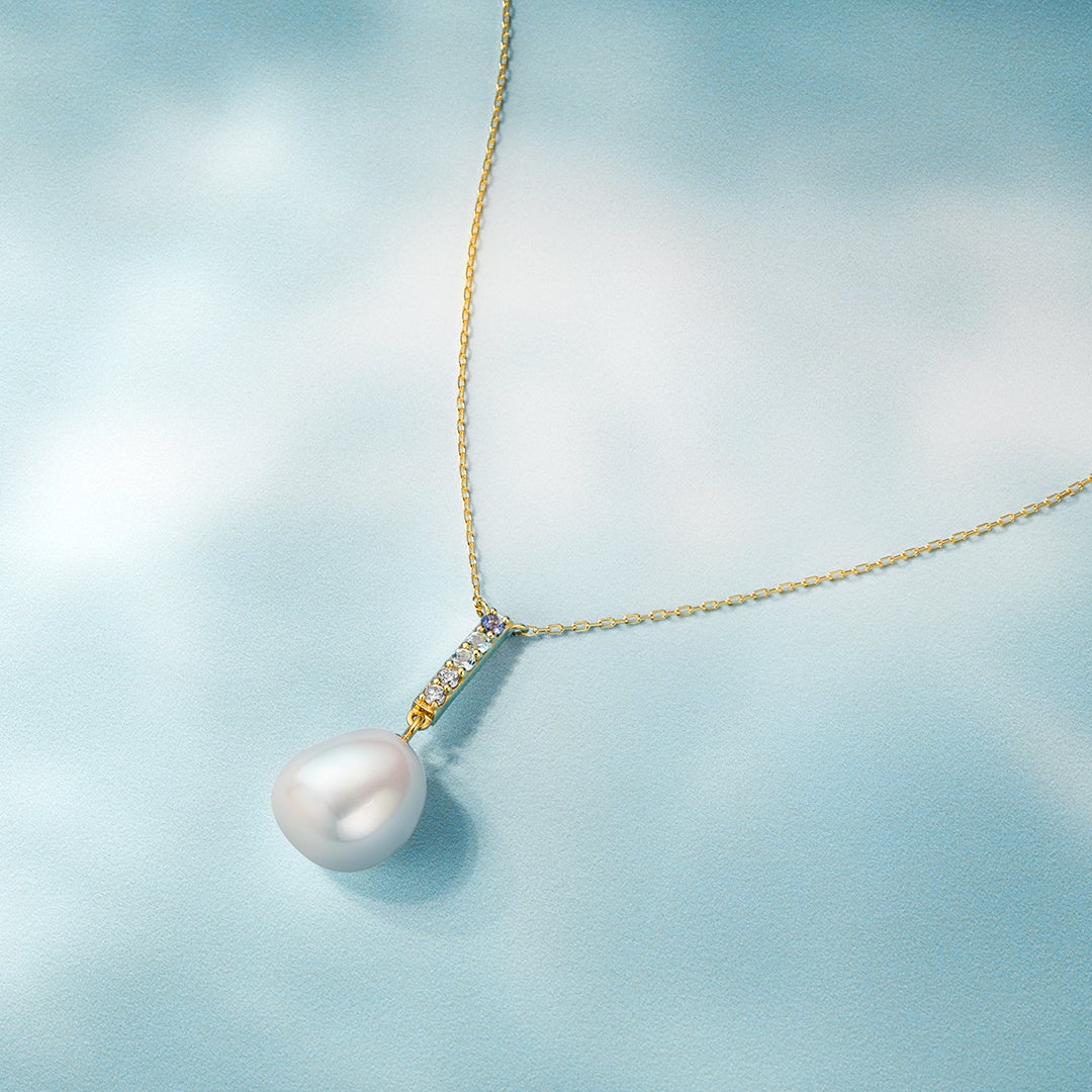 K18YG Necklace / Iolite / Aquamarine / Diamond / Baroque Pearl ¥61,600