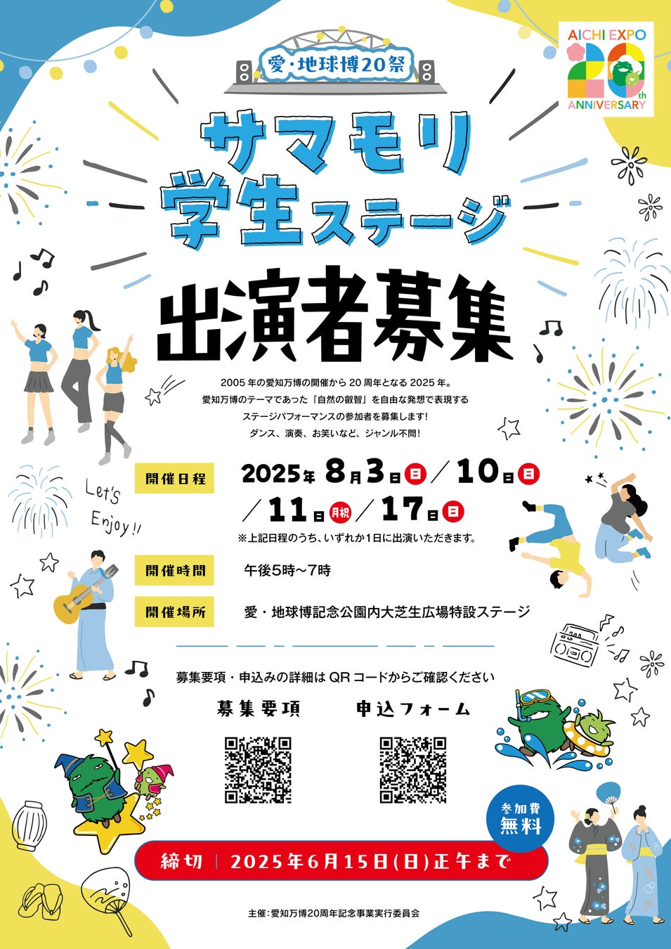 「愛・地球博20祭 サマモリ学生ステージ」出演者を募集中!【2025年8月3日、10日、11日、17日】