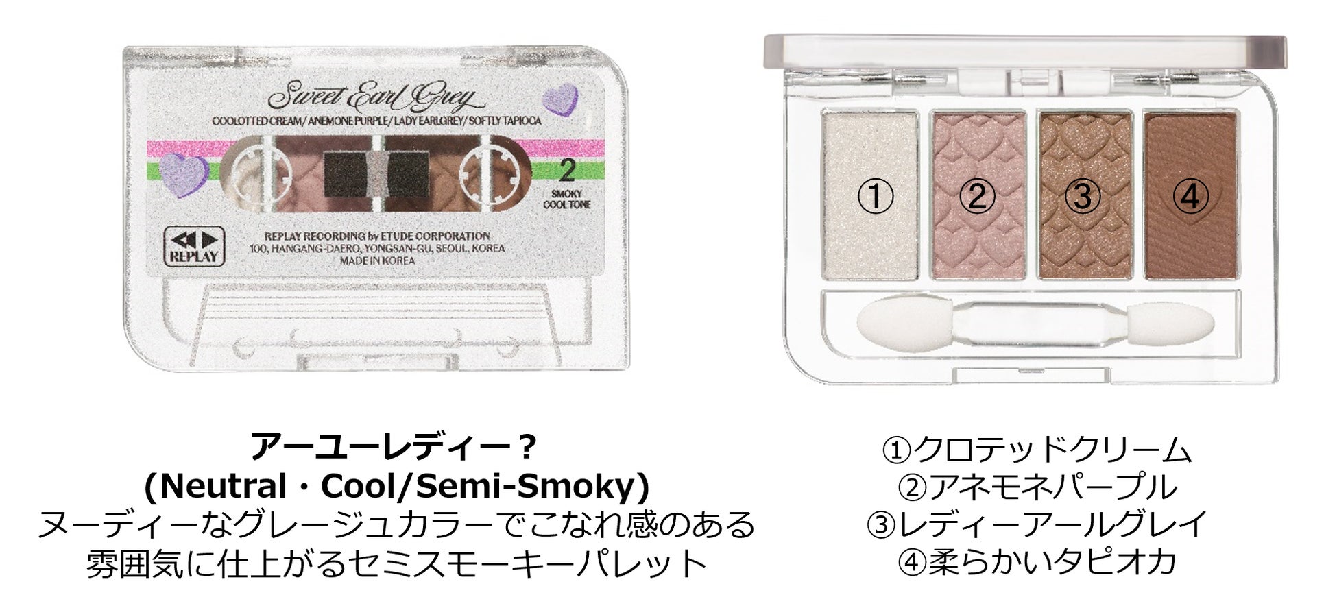 発売と共に、2011年から3年間エチュードの歴代ミューズとして活躍した韓国のアイドルグループ「SHINee」のルックを公開いたします。今回のコレクションではエチュードを象徴する単色アイシャドウの人気カラーとシロップバームが『プレイカラーアイズミニ』、『Lシロップグロッシーバーム』として限定で復活します。現在のトレンドにあわせた、彩度をおとした配色の復刻カラーを盛り込んだパレットと、透け感のあるジューシーなフルーツカラーが唇にするっと広がる、リッチなシロップ質感リップで、懐かしいのにトレンド感のあるメイクが楽しめます。