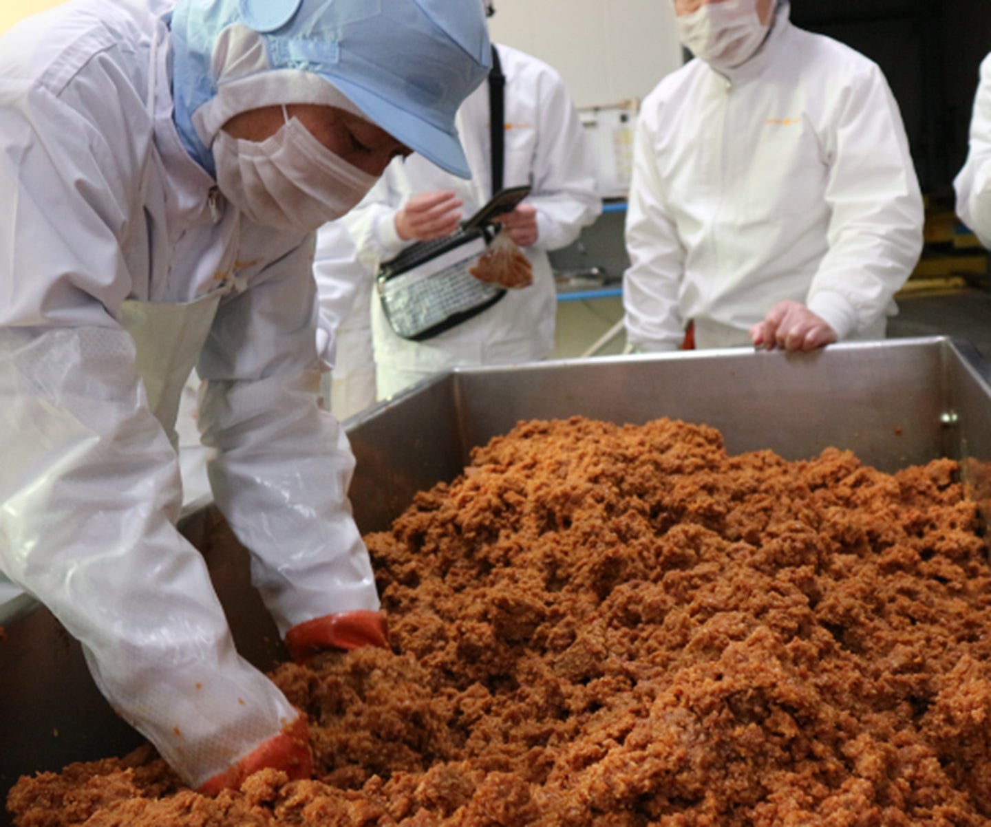 「大寒仕込み」とは、前年の秋に収穫した新穀大豆と米を原料とし、二十四節気の大寒の時季に行う伝統的な手法を用いた味噌󠄀の仕込みを指します。寒さが厳しい大寒の時季は、空気中の雑菌が少なく、仕込みに最も適しているといわれています。今年は、1月26日(金)に北海道産の大豆「ユキホマレ」と愛知県産「コシヒカリ」の米麹、長崎県産の塩「海はいのち」を原料として使用し、「大寒仕込み」を行いました。