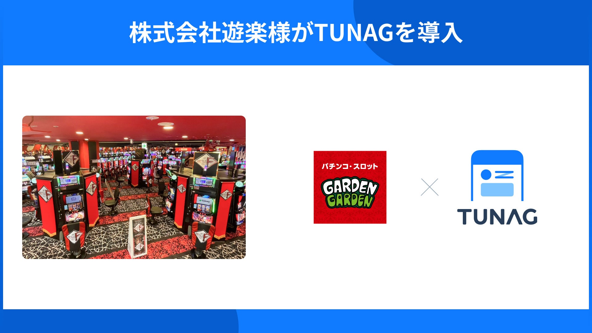 株式会社スタメン(東京本社:東京都千代田区、代表取締役:大西 泰平、以下 当社)が開発・提供する「TUNAG(ツナグ、 https://biz.tunag.jp/ )」は、「ガーデン」「ウエスタン」の屋号でパチンコホールを展開する株式会社遊楽(埼玉県さいたま市、代表取締役社長:密山 暉和、以下 遊楽)に、現場スタッフを含む1,100名の全従業員への情報共有促進のためにご導入いただいたことをお知らせいたします。