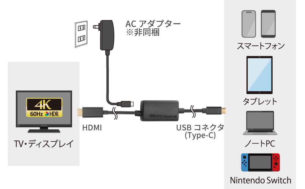 本製品はNintendo Switch、Steam Deckでも動作確認済み。 純正ドックがなくても、手軽にテレビやモニターに出力することができます。