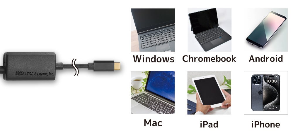 本製品は、映像出力対応のUSB Type-Cポートを搭載したWindows、Mac、Chromebook、Android、iPad、iPhoneに対応しています。