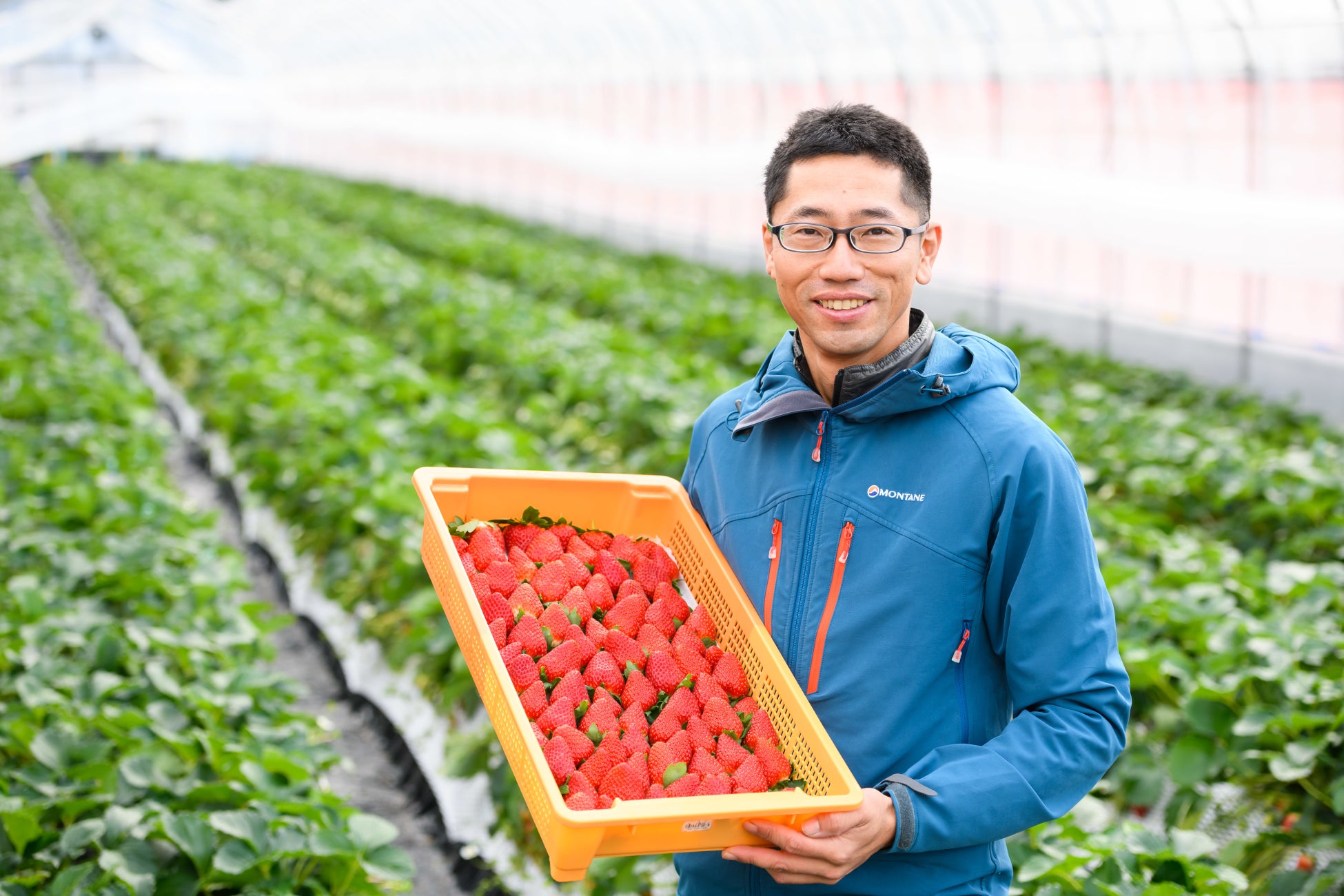 小学校2年生の時に両親がいちご農家を始め、私自身は1年間オランダで農業研修を受けた後跡を継ぎました。当園は品質管理を徹底し、いちごの糖度がピークに達するまで畑で完熟させる“完熟イチゴ”が売りです。