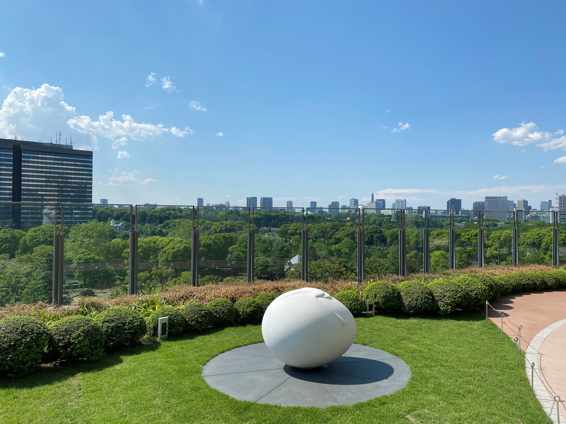 6F パークビューガーデンには、東京ミッドタウン日比谷のアートワークとして、安田侃氏の作品「生誕」を設置されています。「JAPAN VALUE(未来志向の新たな体験や価値の創造)を世界に発信しつづける街」を街のビジョンとして掲げる東京ミッドタウン日比谷にふさわしく、新しい出会い、新しい時代、新しい価値が生まれることを象徴するアートです。素材はイタリア産の白大理石で、芝生の緑、建物の外に広がる日比谷公園の緑に映え、自然光の下で輝きます。眺めるだけでなく、作品に触れて楽しむこともできます。