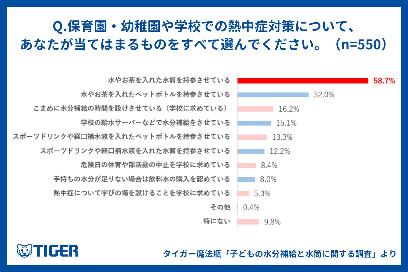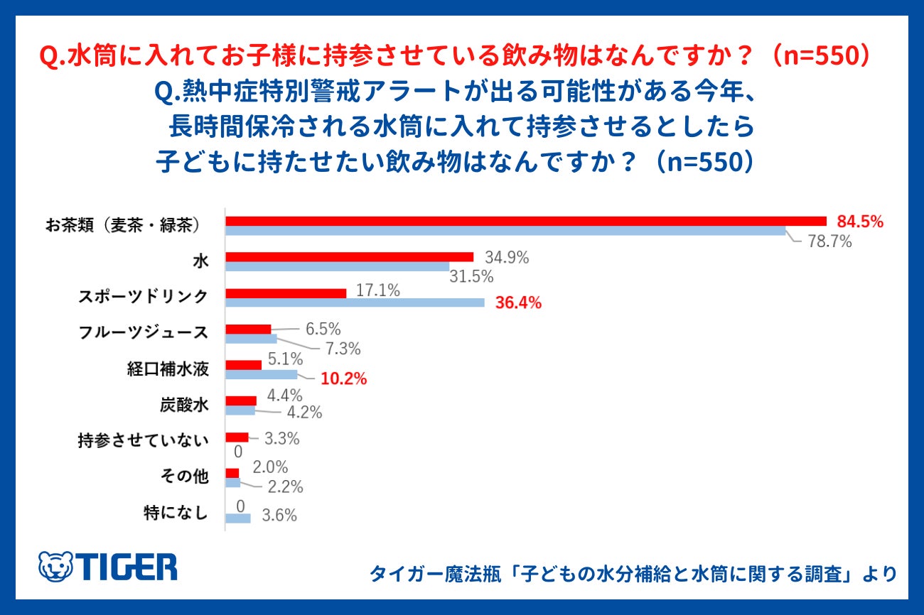 ※調査結果をご紹介いただく際は【タイガー魔法瓶「子どもの水分補給と水筒に関する調査」より引用】と注釈ご記載ください。