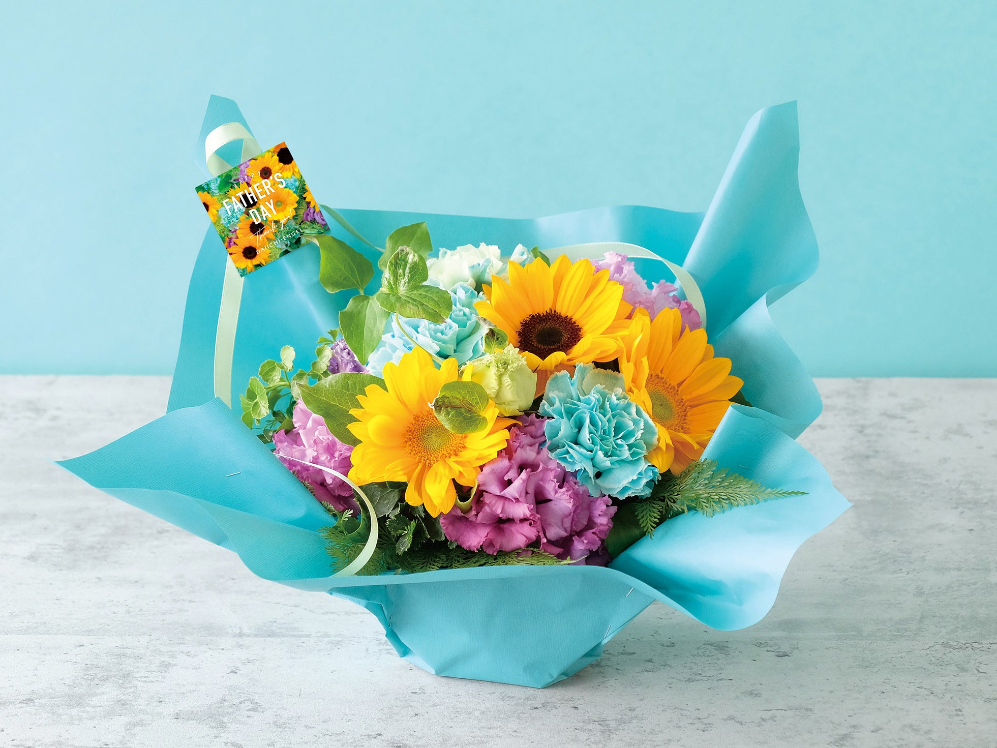 ~父の日アイテム店頭で5月31日(金)より予約スタート~父の日には定番のヒマワリブーケ!季節感あふれるアジサイブーケも!