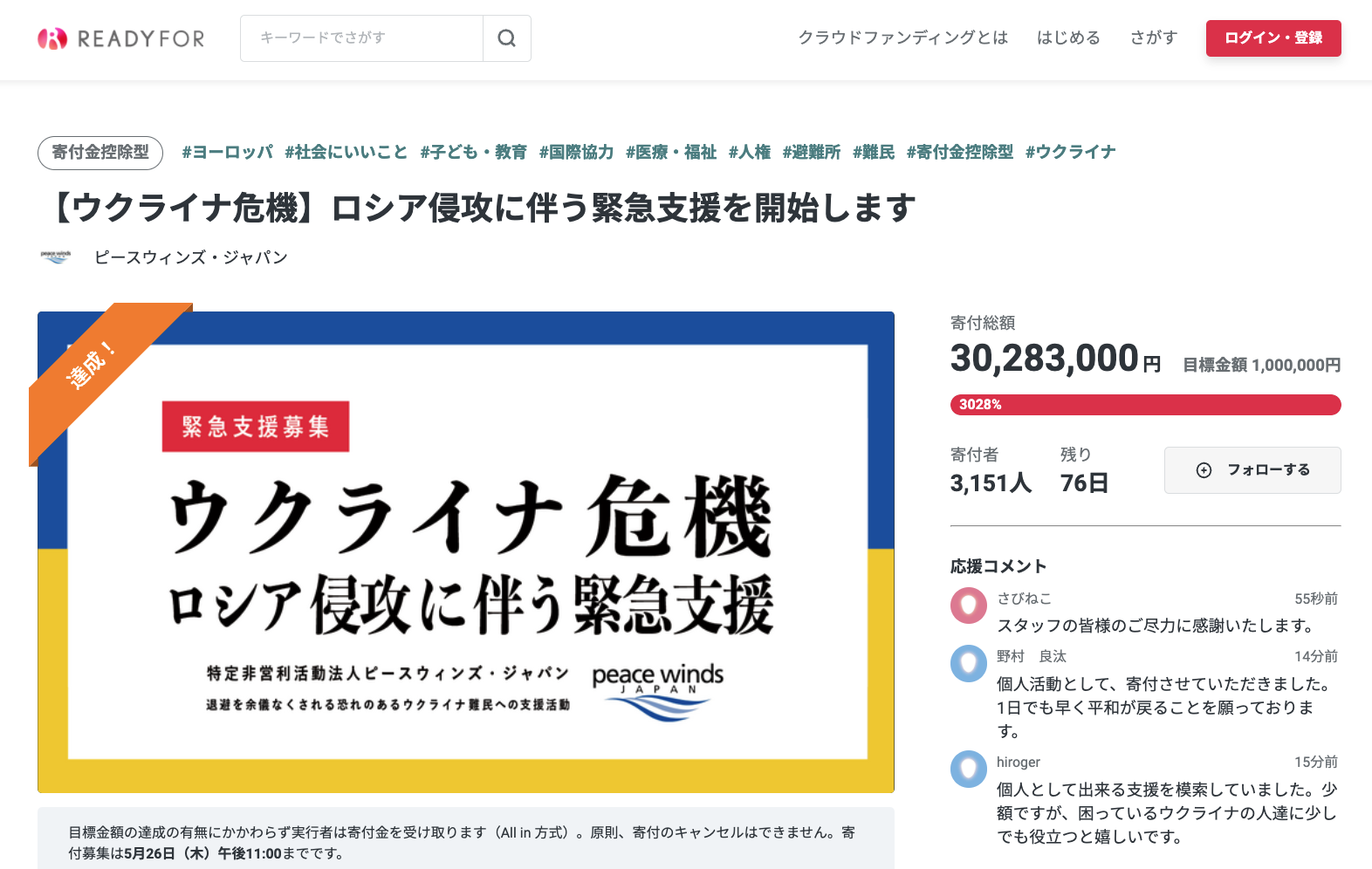 URL :https://readyfor.jp/projects/JPF-Ukraine2022